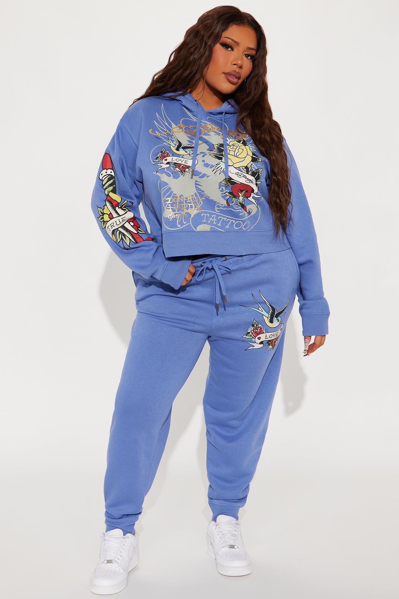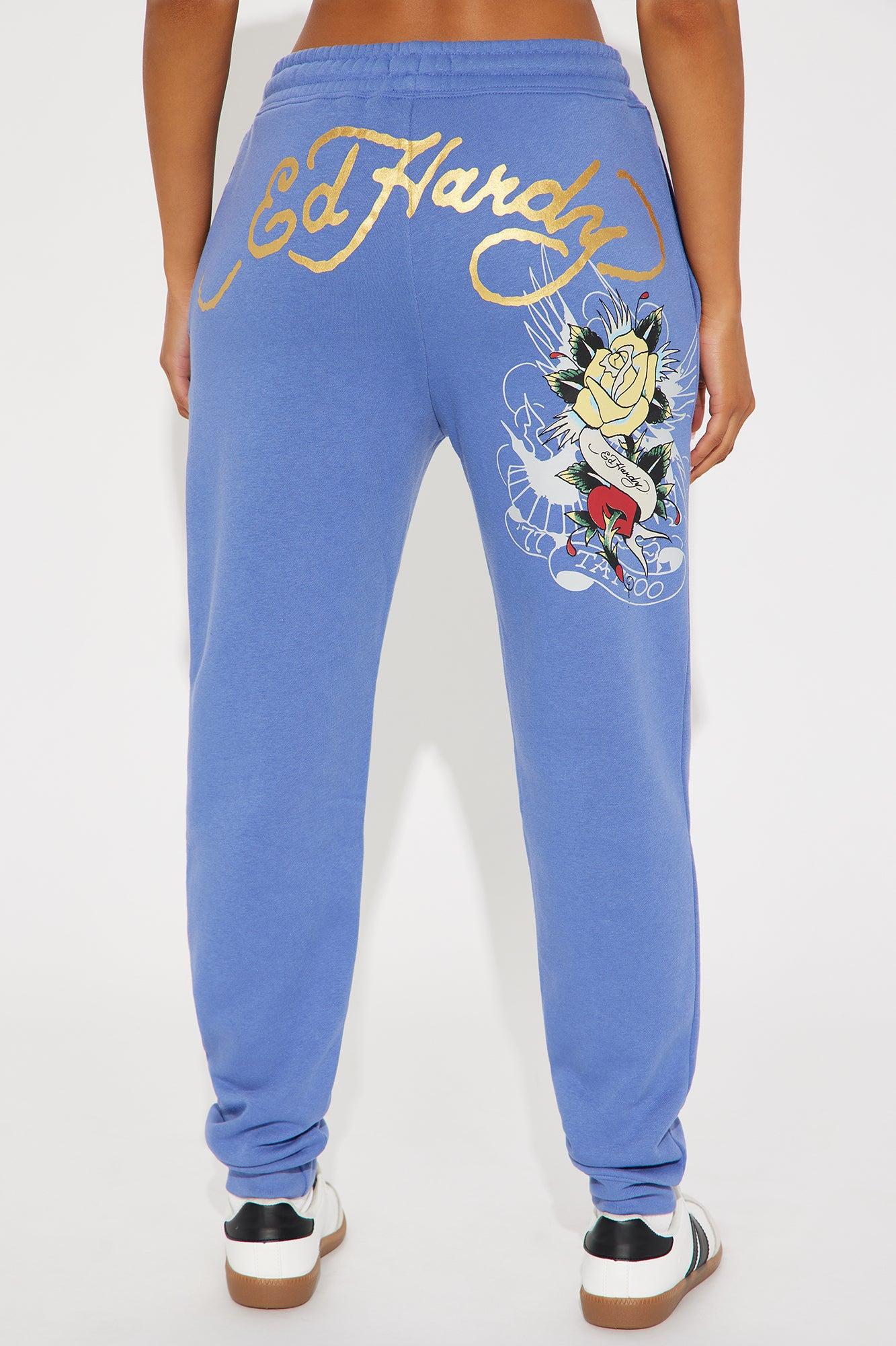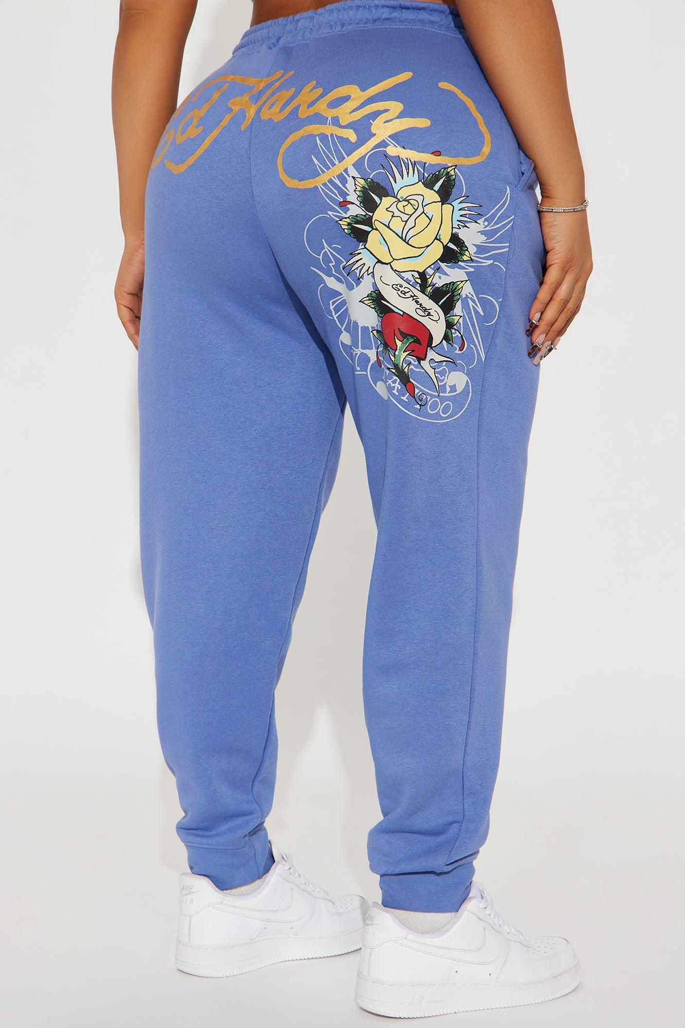 Available In Blue. Jogger With Drawstring Stretch Ed Hardy Graphic Front and Back Screen Pair To "Ed Hardy Brave Eagle Cropped Hoodie" Disclaimer: Due To The Printing Process A Difference In Saturation May Occur. Each Garment Is Unique. 55% Cotton 45% Polyester Imported