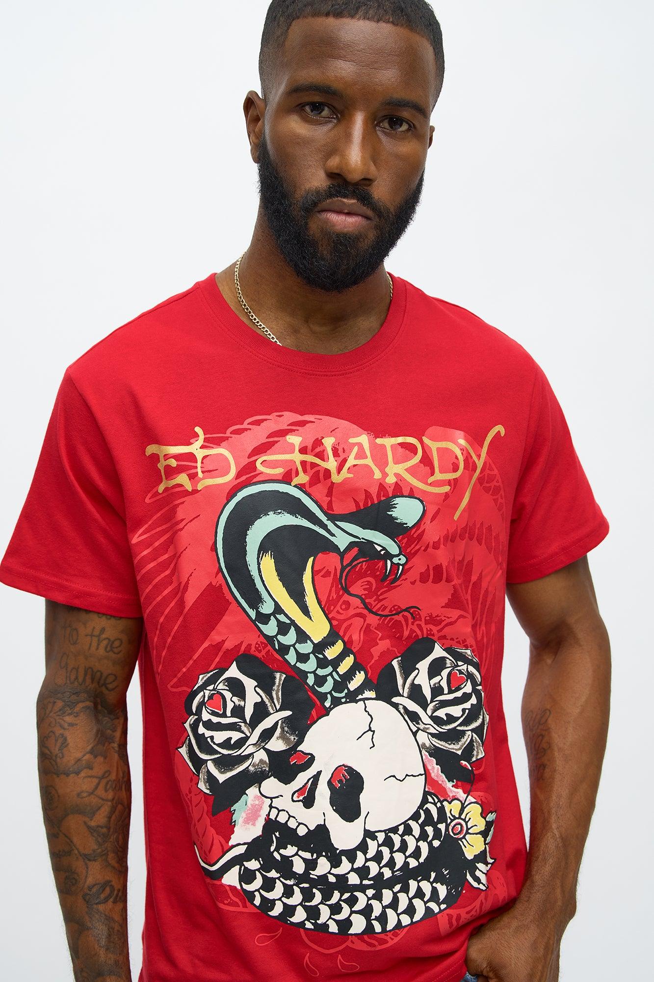 Ed Hardy Cobra Rose Tattoo Short Sleeve Tee - Red