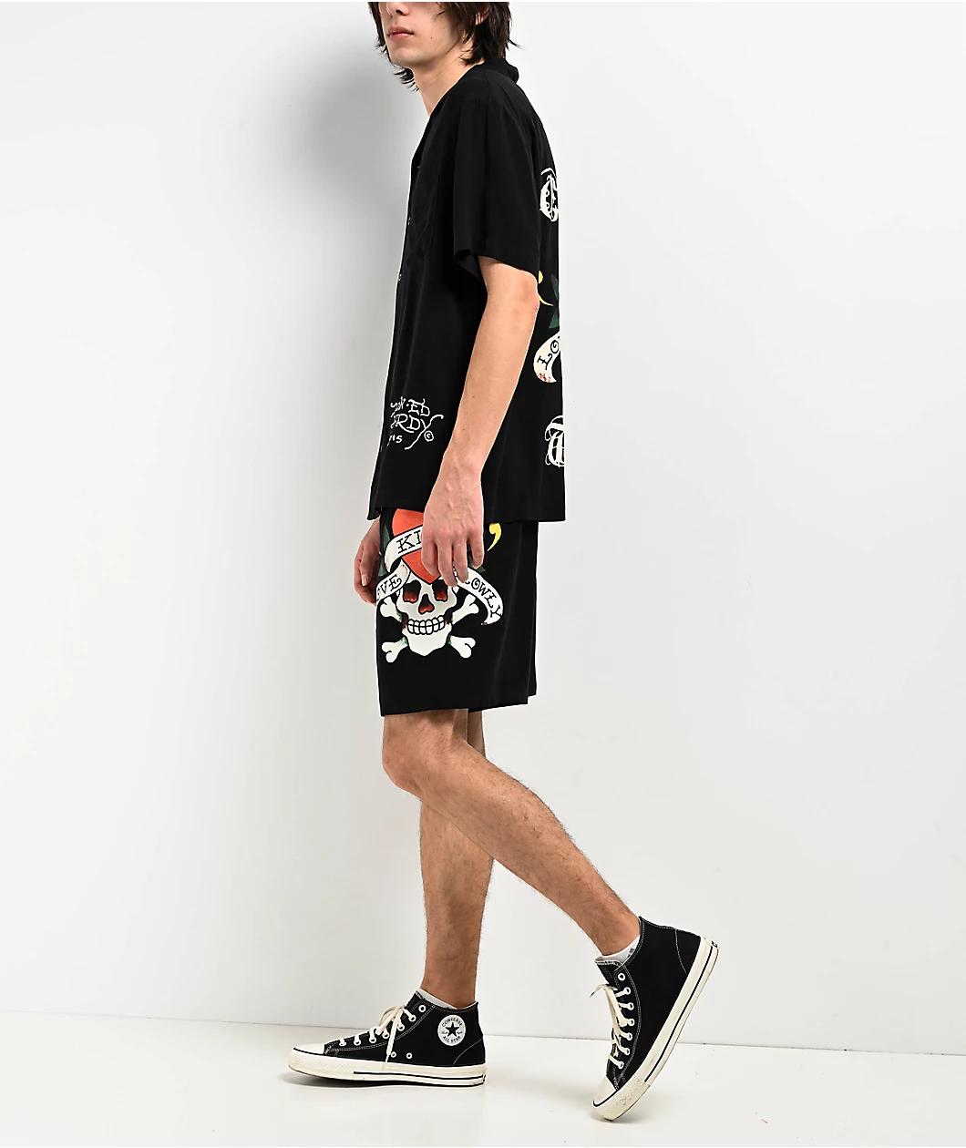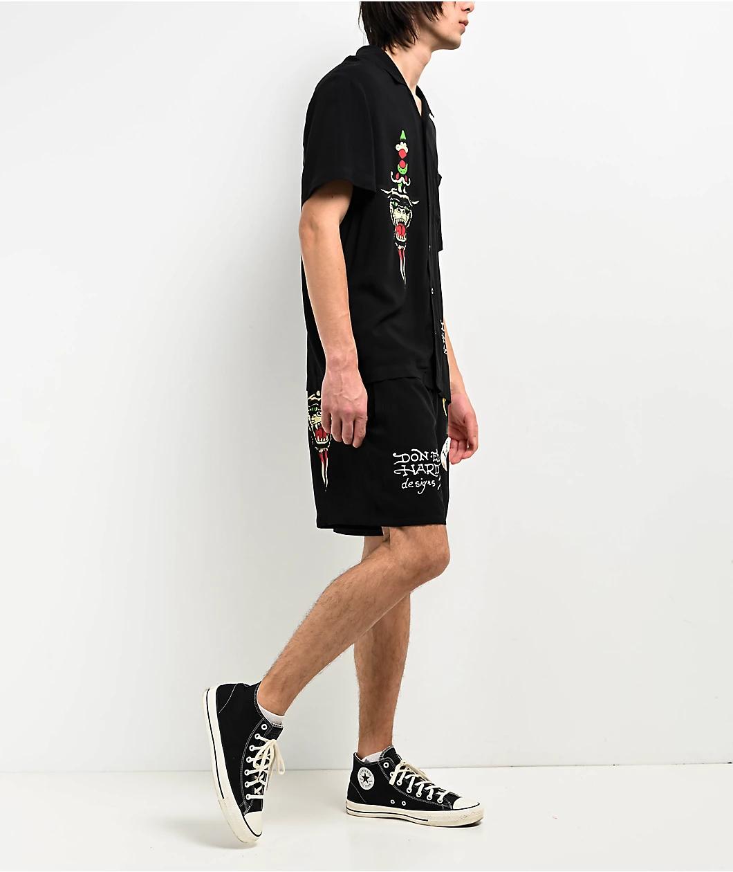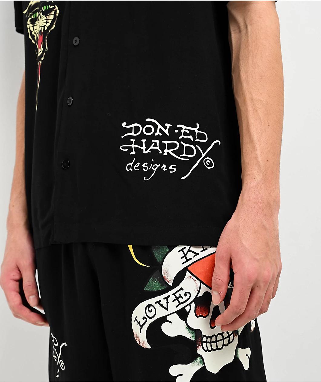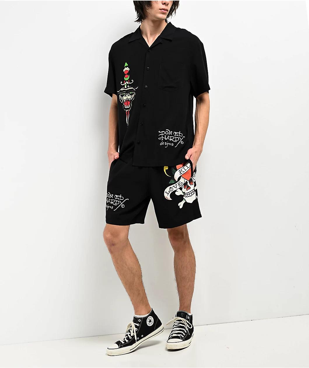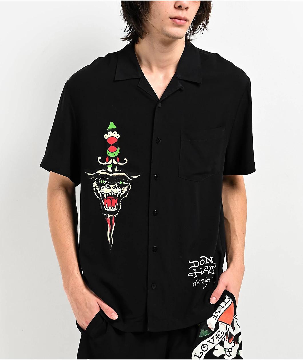 Ed Hardy Love Kills Slowly Woven Black Short Sleeve Button Up Shirt