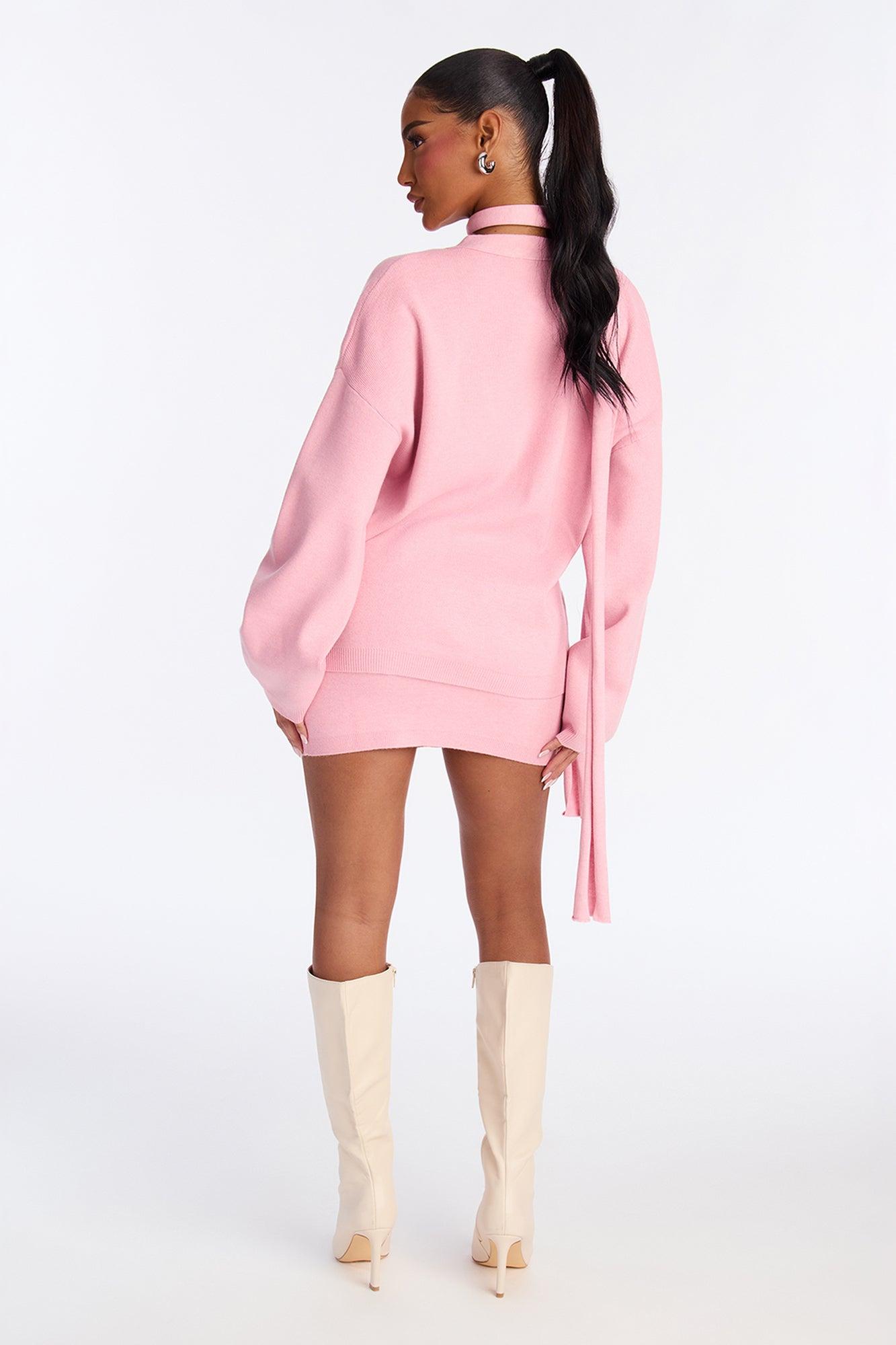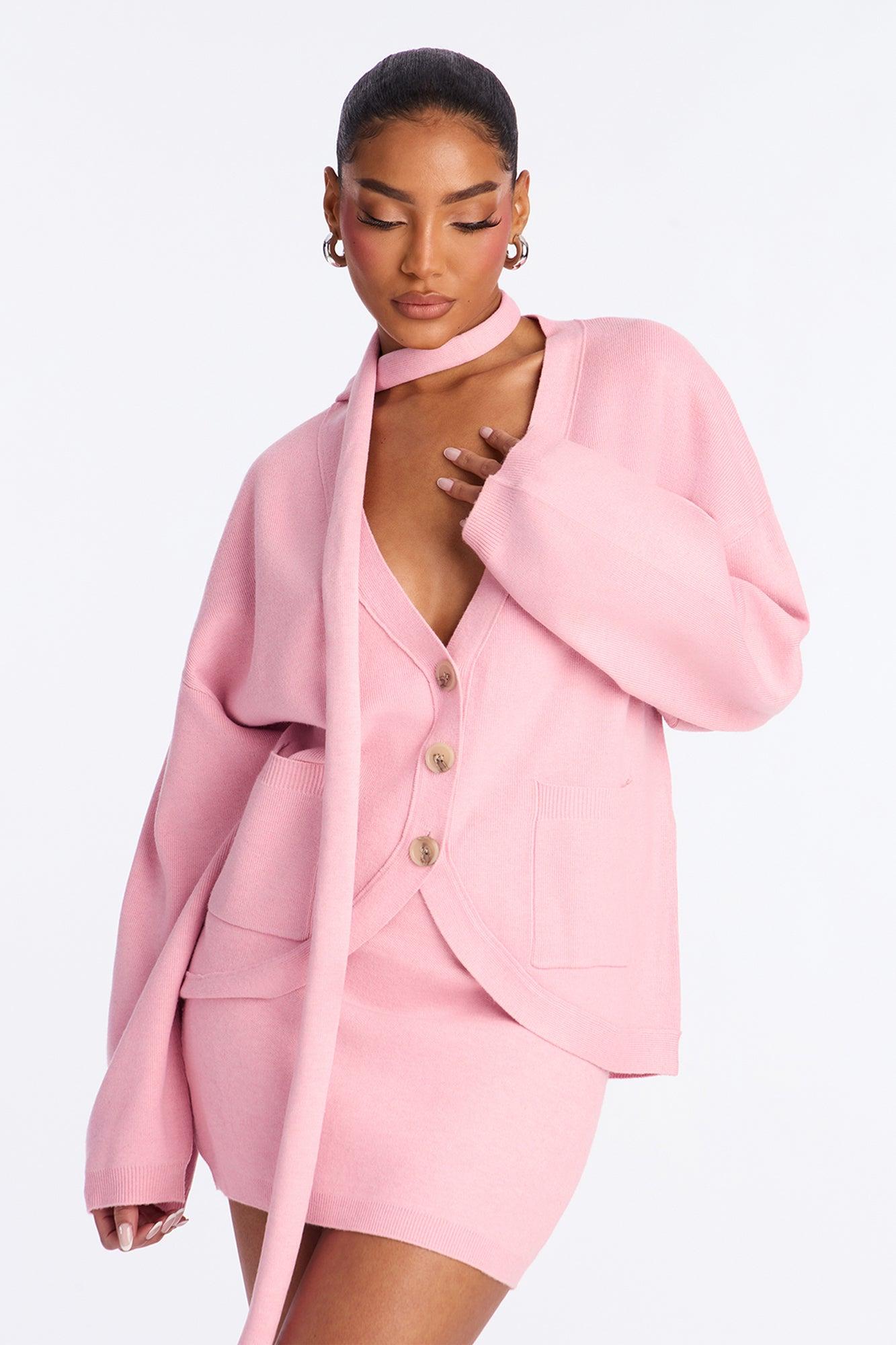 Eden 3 Piece Sweater Scarf Mini Skirt Set - Pink Female