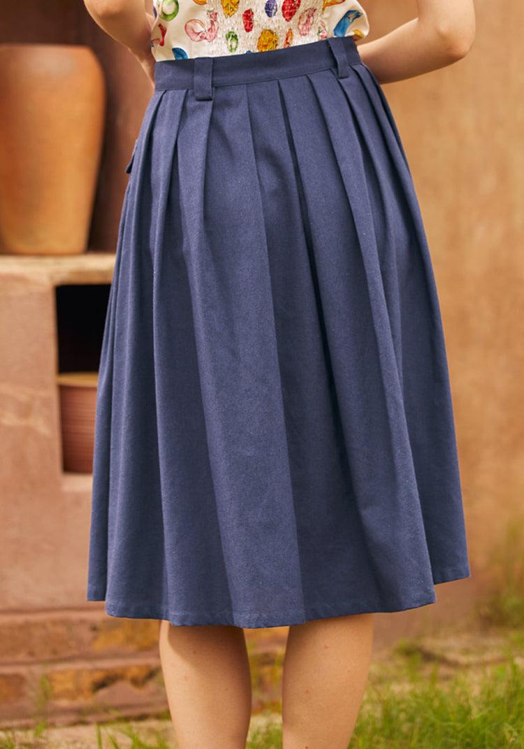 A staple that echoes the deep blue sea; this ModCloth namesake label pleated navy midi skirt is as versatile as it is graceful. Complete with smart front buttons and practical pocket flaps, its belt loops invite you to accessorize with your favorite belt. Perfect for artistic gallery openings or a brisk walk in the park.70% Viscose, 30% Linen Machine wash cold, line dryImportedModel is wearing a US size S Model Measurements: Height 5'7"/ Bust 33''/ Waist 24''/ Hips 35''