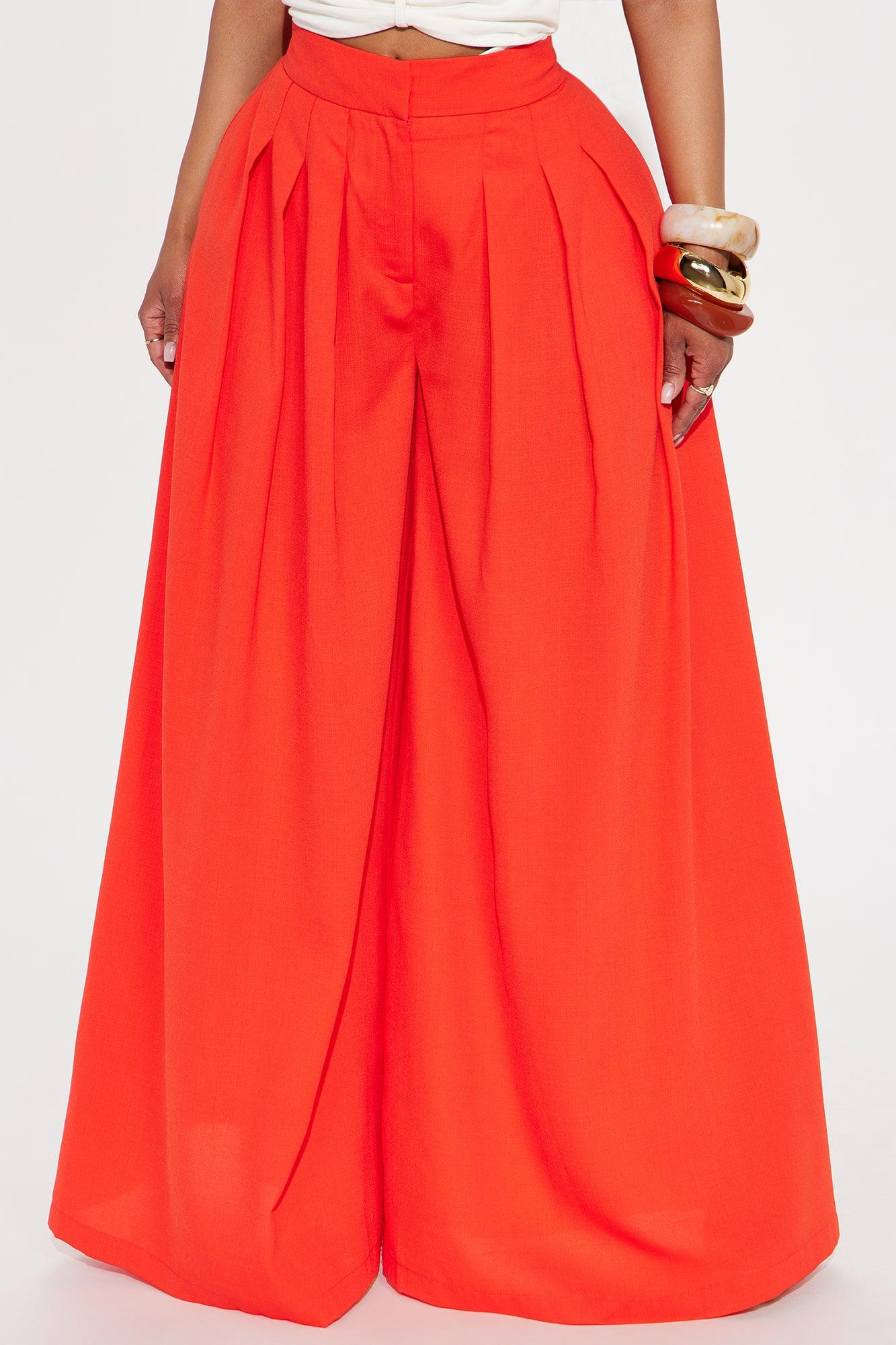 Efina Wide Leg Linen Trouser - Tomato Red Female
