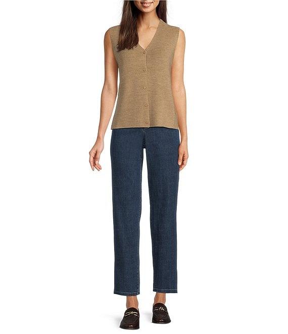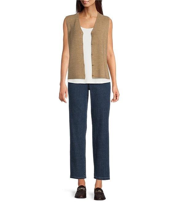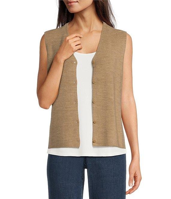 Eileen Fisher Merino Wool Knit V-Neck Sleeveless Vest