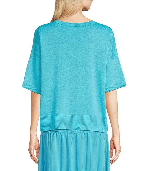 Eileen Fisher Organic Cotton Blend Crew Neck Elbow Sleeve Top