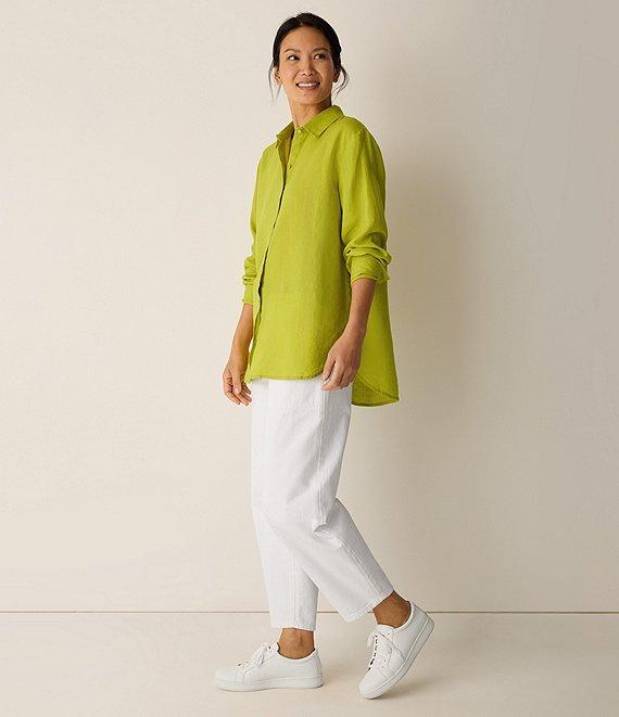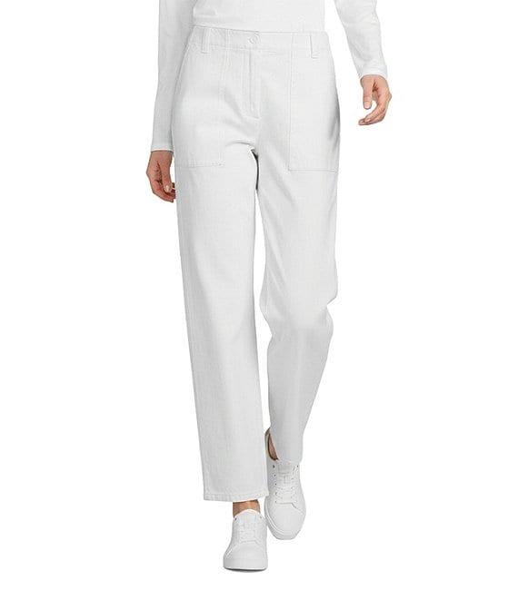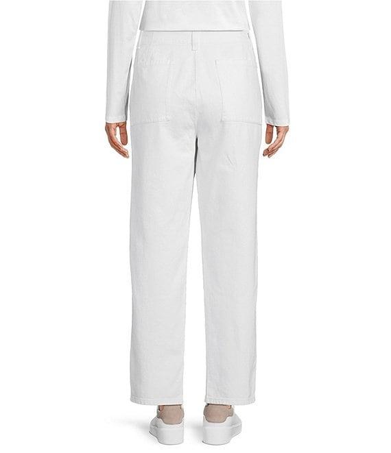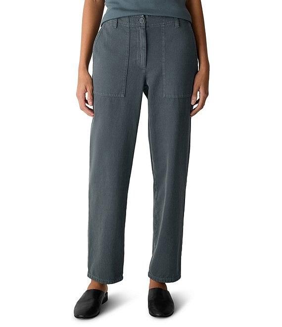 From Eileen Fisher, this pant features: Textural weave fabrication Workwear silhouette Tapered leg 2 front/back patch pockets Belt loops Front button/zip closure Approx. 29" inseam; 10.75" front rise; 16.75" back rise Organic cotton Machine wash Imported.
