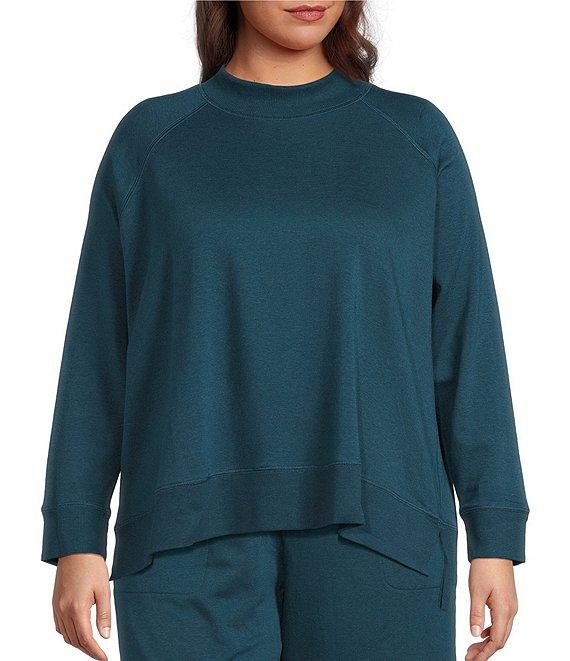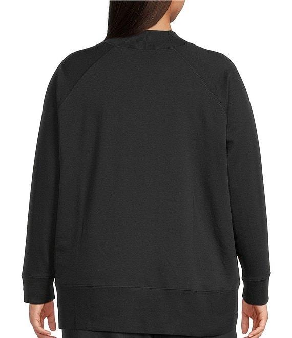 Eileen Fisher Plus Size Organic Cotton Blend Soft Knit High Neck Long Sleeve Top