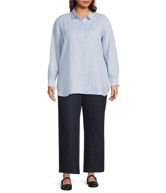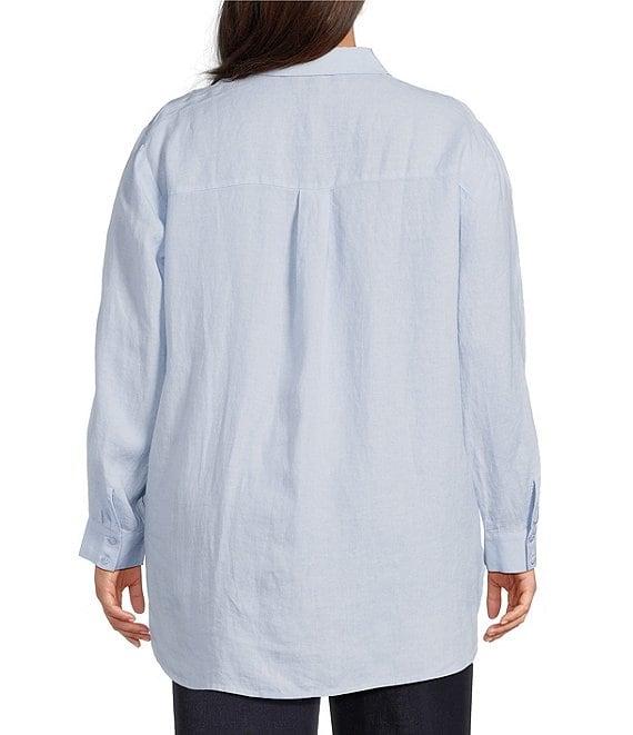 Eileen Fisher Plus Size Organic Handkerchief Linen Classic Collar Long Sleeve Shirt