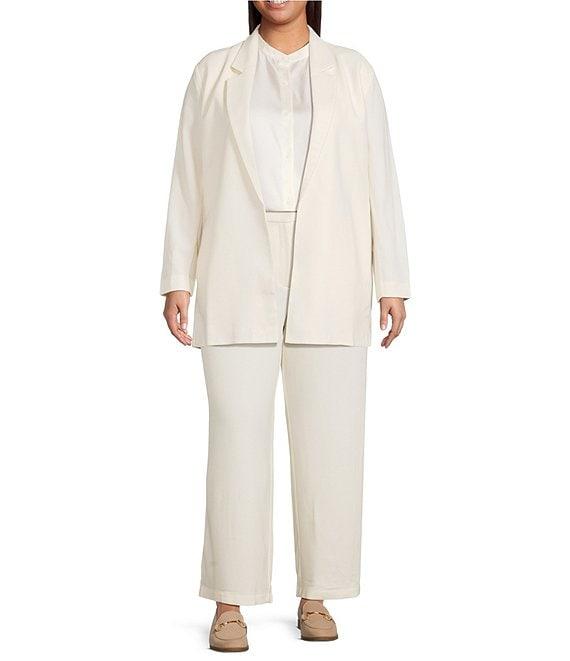 Eileen Fisher Plus Size Stretch Wool Blend Crepe Notch Lapel Long Sleeve Blazer