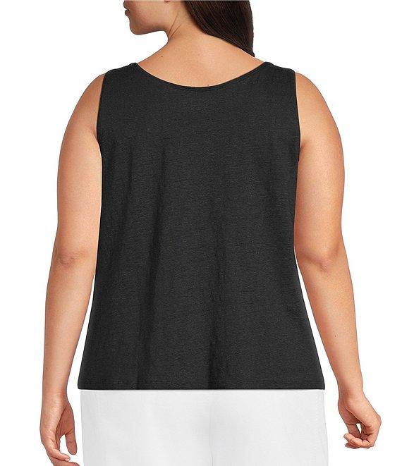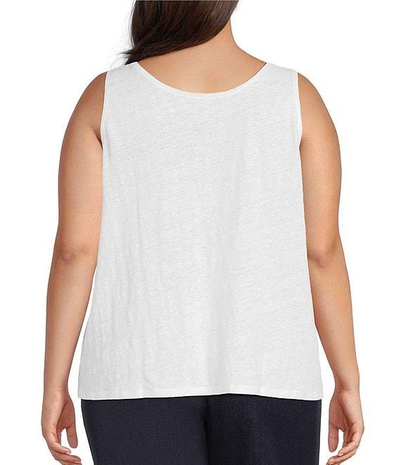 Eileen Fisher Plus Size Texture Organic Linen Knit Scoop Neck Sleeveless Tank