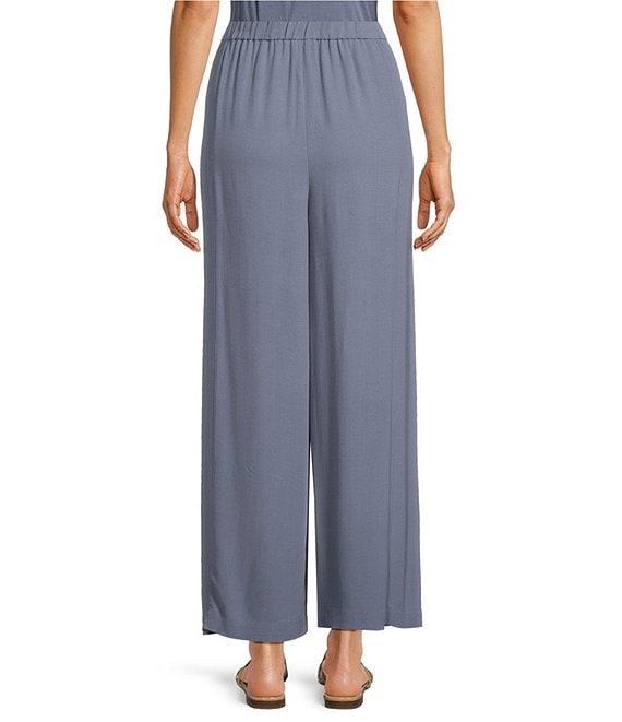Eileen Fisher Silk Georgette Elastic Waist Wide Ankle Pants