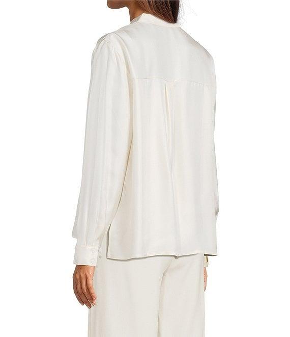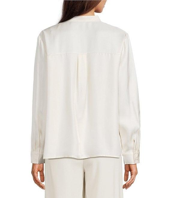 Eileen Fisher Silk Twill Mandarin Collar Long Sleeve Button Front Top