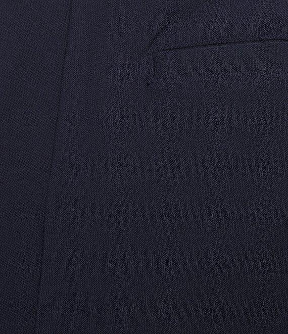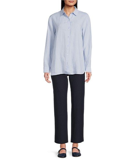 From Eileen Fisher, these pants feature: Stretch crepe fabrication Straight leg silhouette Pull-on construction Approx. 28" inseam; 10.5" front rise Viscose/recycled nylon/elastane Machine wash Imported.