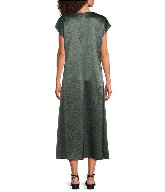 Eileen Fisher Textured Satin V-Neck Cap Sleeve Maxi Dress