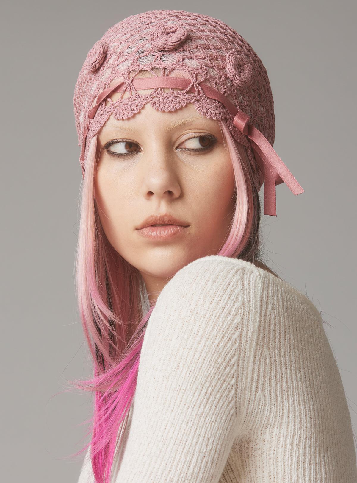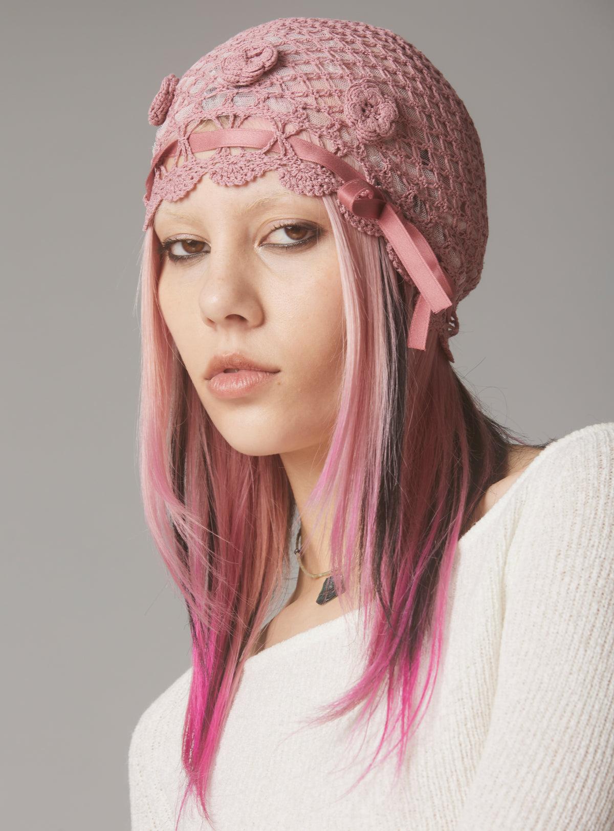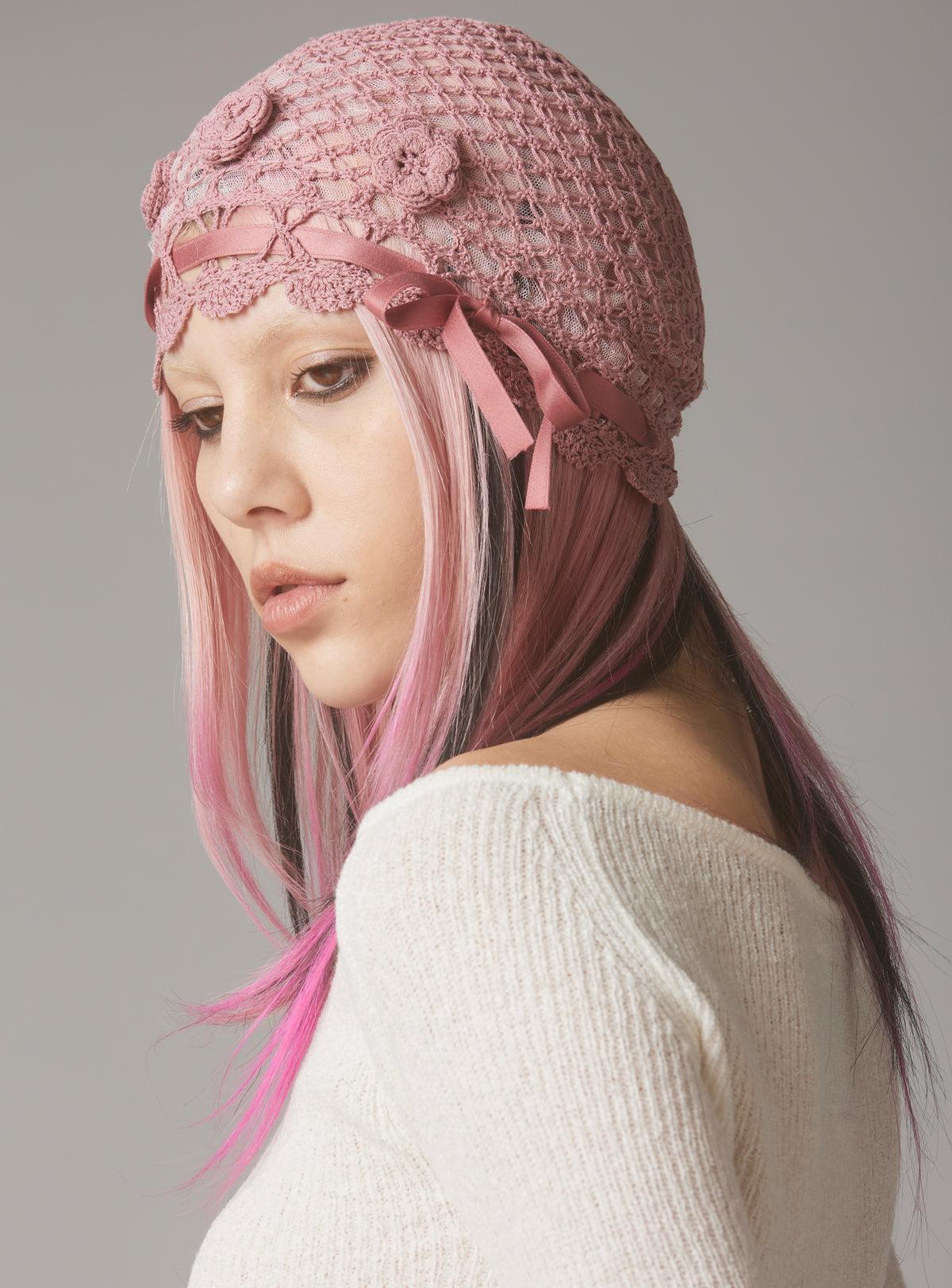 Beautiful hand-crocheted hat with ribbon and floral applique throughout. Part of a very limited run. Fully lined. Imported UWHT-1020 Shell: 89% Viscose; 11% Chinlon Lining: 100% Polyester