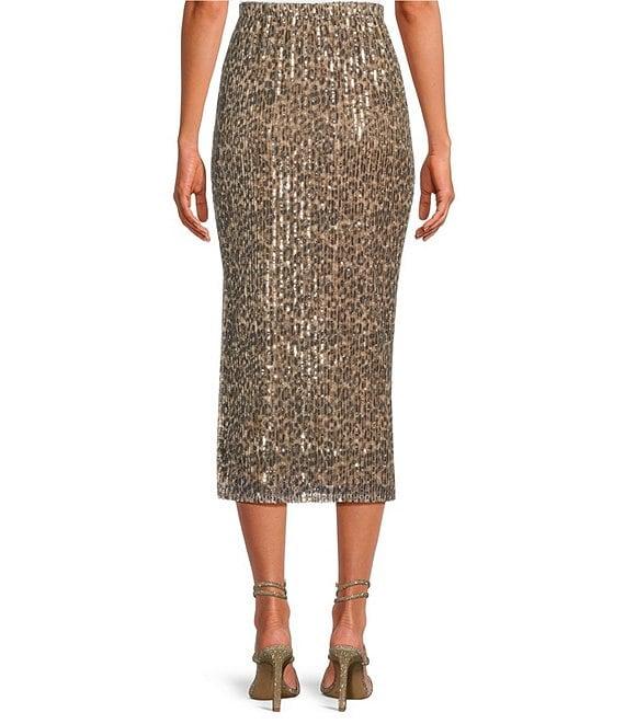 ELAN Cheetah Coordinating Sequin Maxi Sheath Skirt