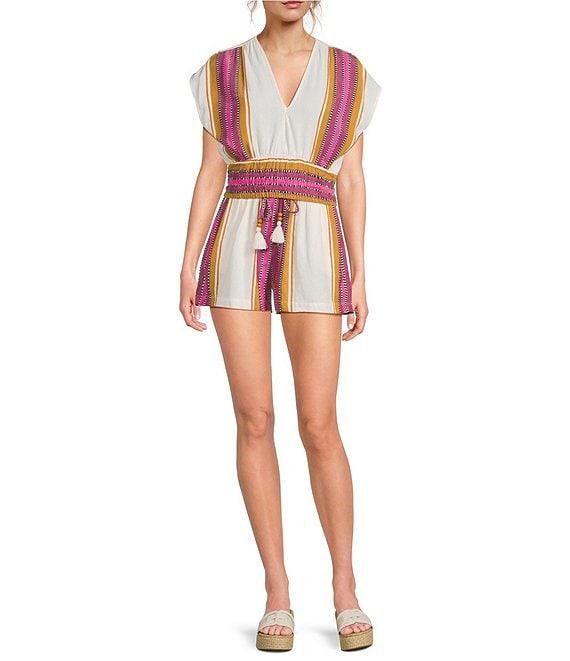 From ELAN, this top features: Woven fabrication V-neckline Short sleeves Elastic hem Pullover construction Approx. 17.5" length Cotton/viscose/acrylic Hand wash cold/dry flat Imported.