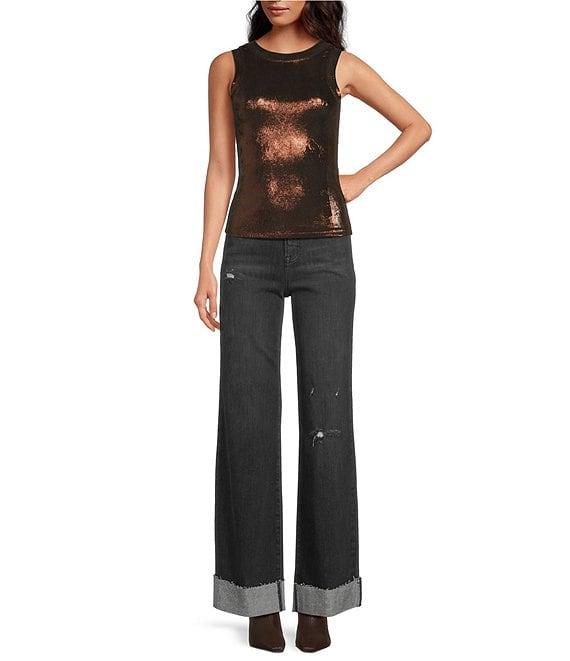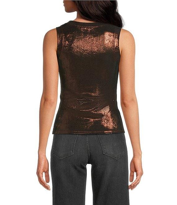 ELAN Glitter Knit Crew Neck Sleeveless Tank