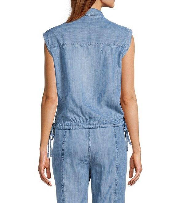 ELAN Tencel Chambray Coordinating Johnny Collar Sleeveless Top