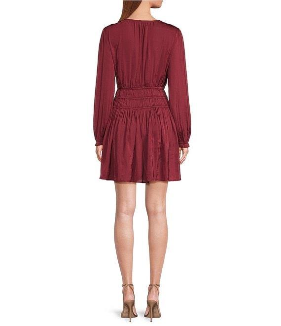 ELAN V-Neck Long Sleeve Smocked Waist Dress
