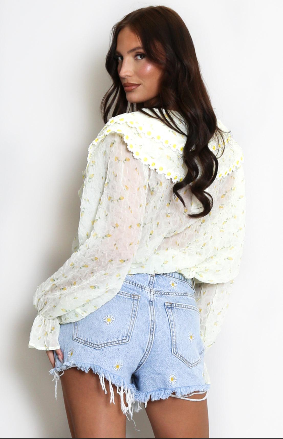 Unleash your fearless style with the ELANI COLLARED BLOUSE in a daring daisy pattern print! Featuring an exaggerated collar and front button-up design, this blouse is available in both bold yellow and playful pink. Made with a luxurious blend of 75% polyester and 25% silk, it's the perfect blend of comfort and adventure. Elevate your wardrobe with this must-have piece that will make a statement wherever you go!