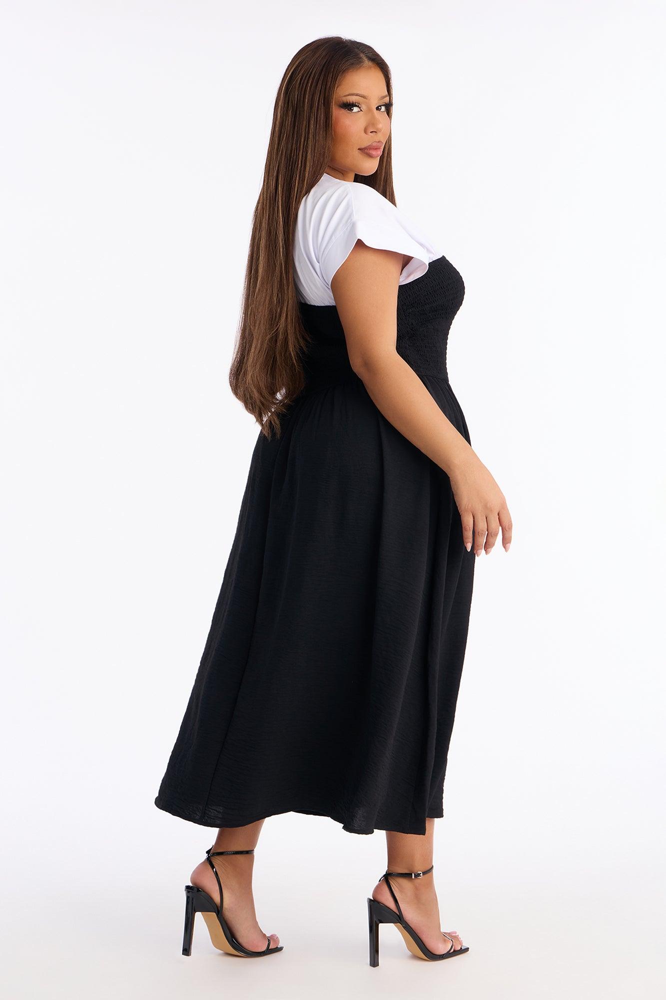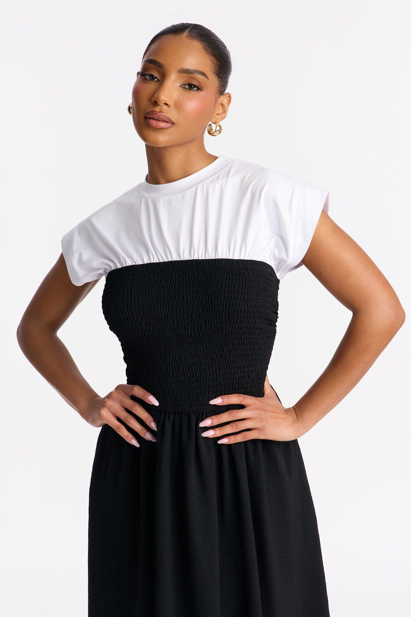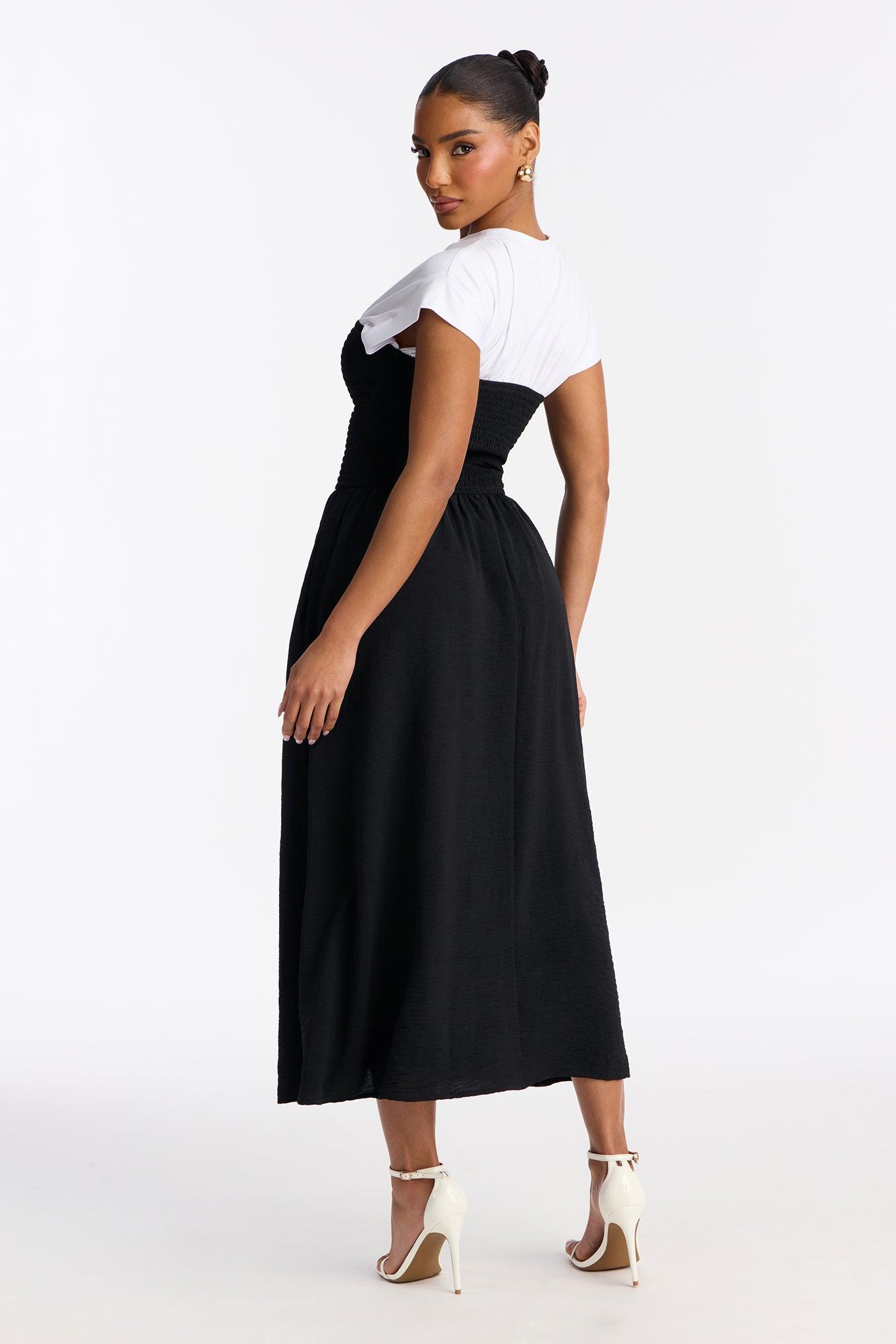 Elara Cinched Waist Midi Dress - Black/White Female