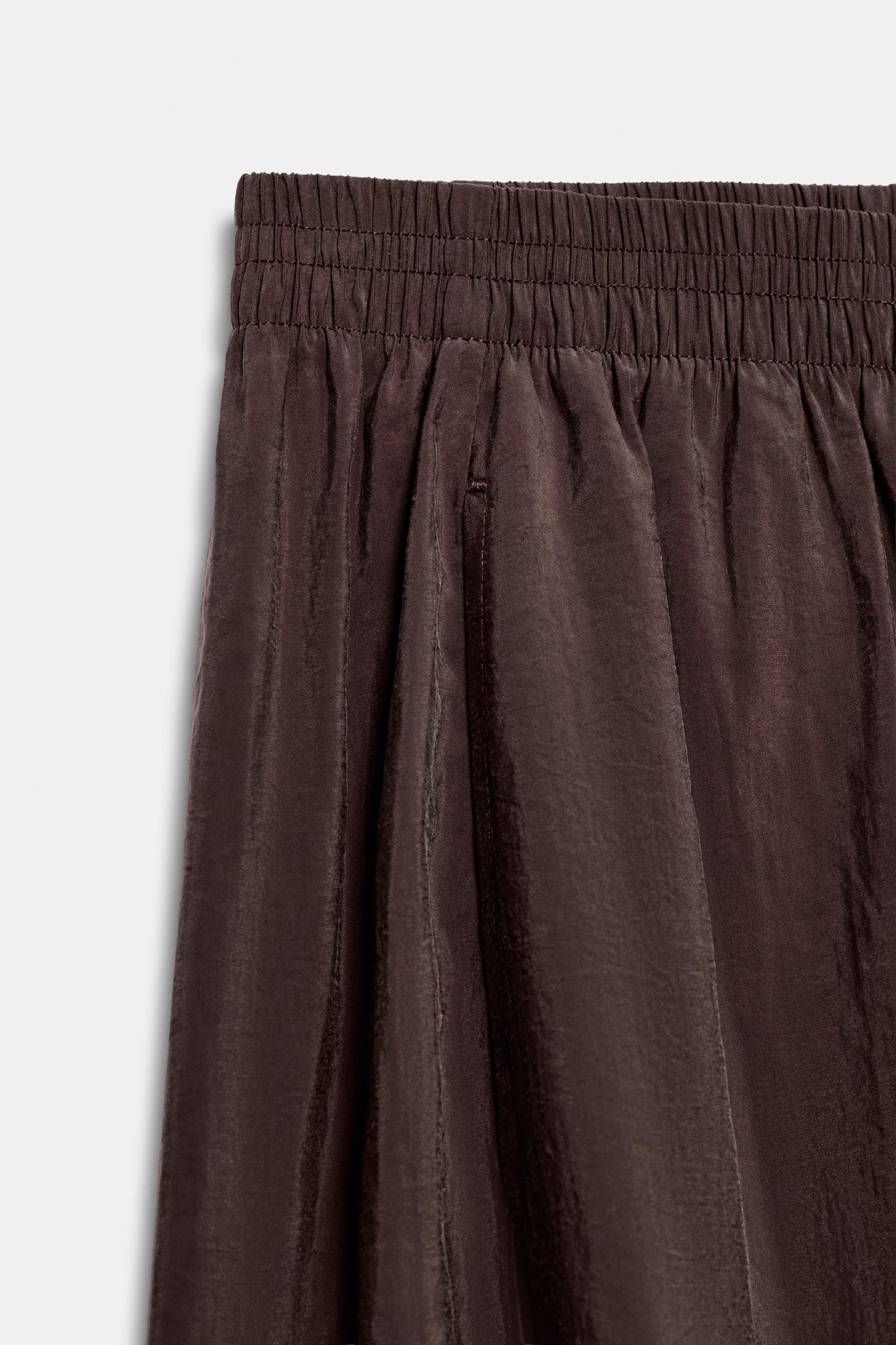 Brown Elastic Waist Wide Leg Pants