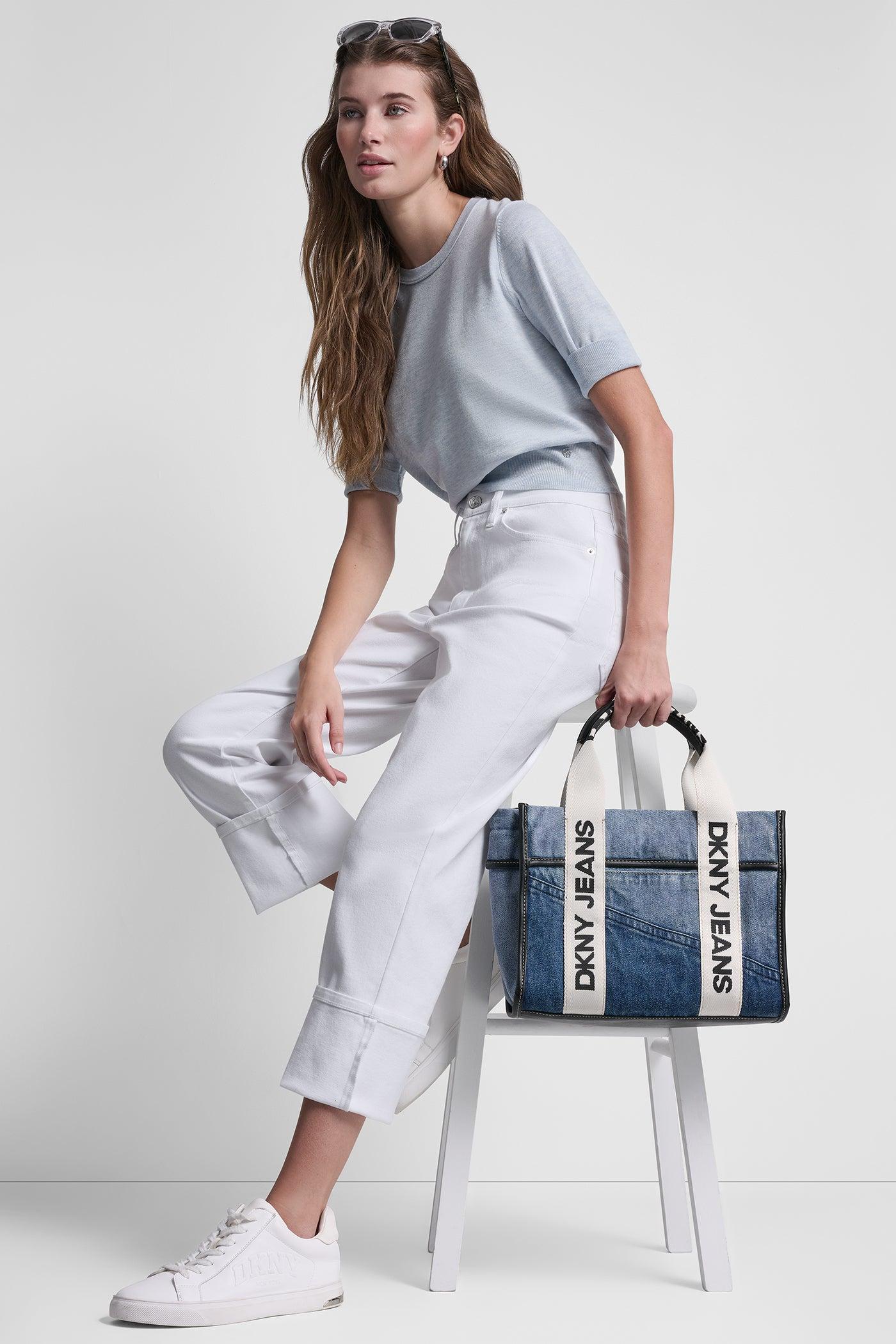 Crew neckline Elbow sleeves Pullover style Slim fit Solid pattern No pockets HPS: 21" Fabric: 62% viscose rayon, 38% polyester Care: Machine wash cold with like colors, gentle cycle, only non-chlorine bleach when needed, reshape and lay flat to dry, cool iron if needed. Imported Style #: DJ5R0555