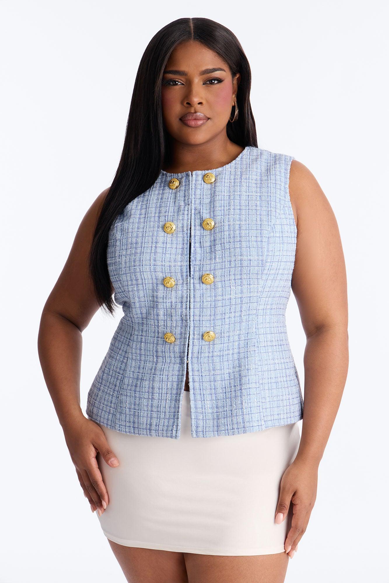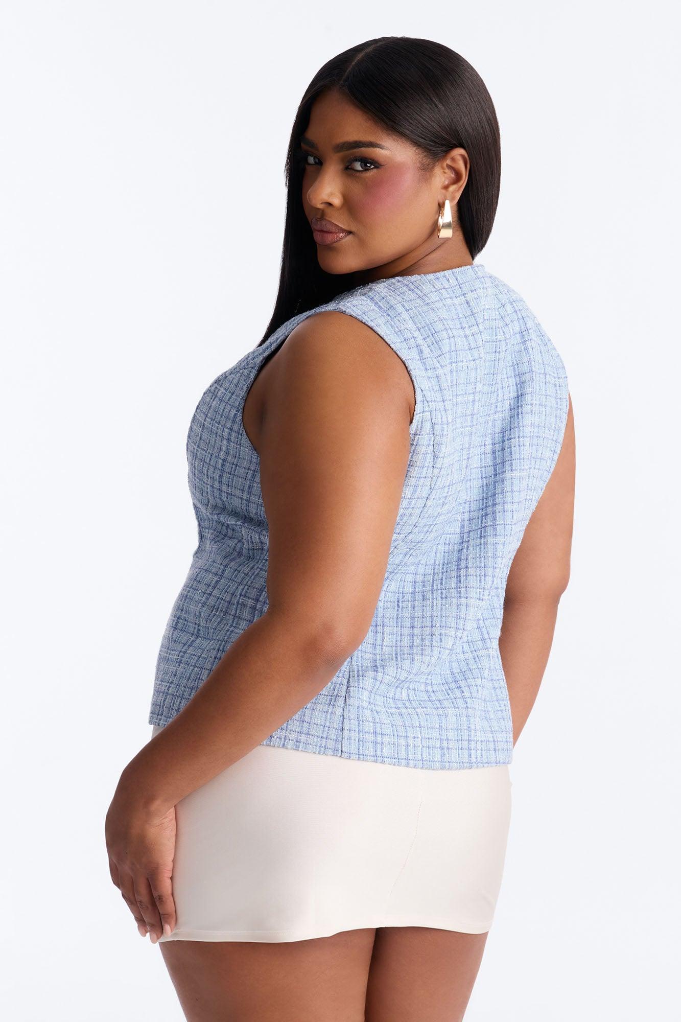 Elegant Love Tweed Vest Top - Blue Female
