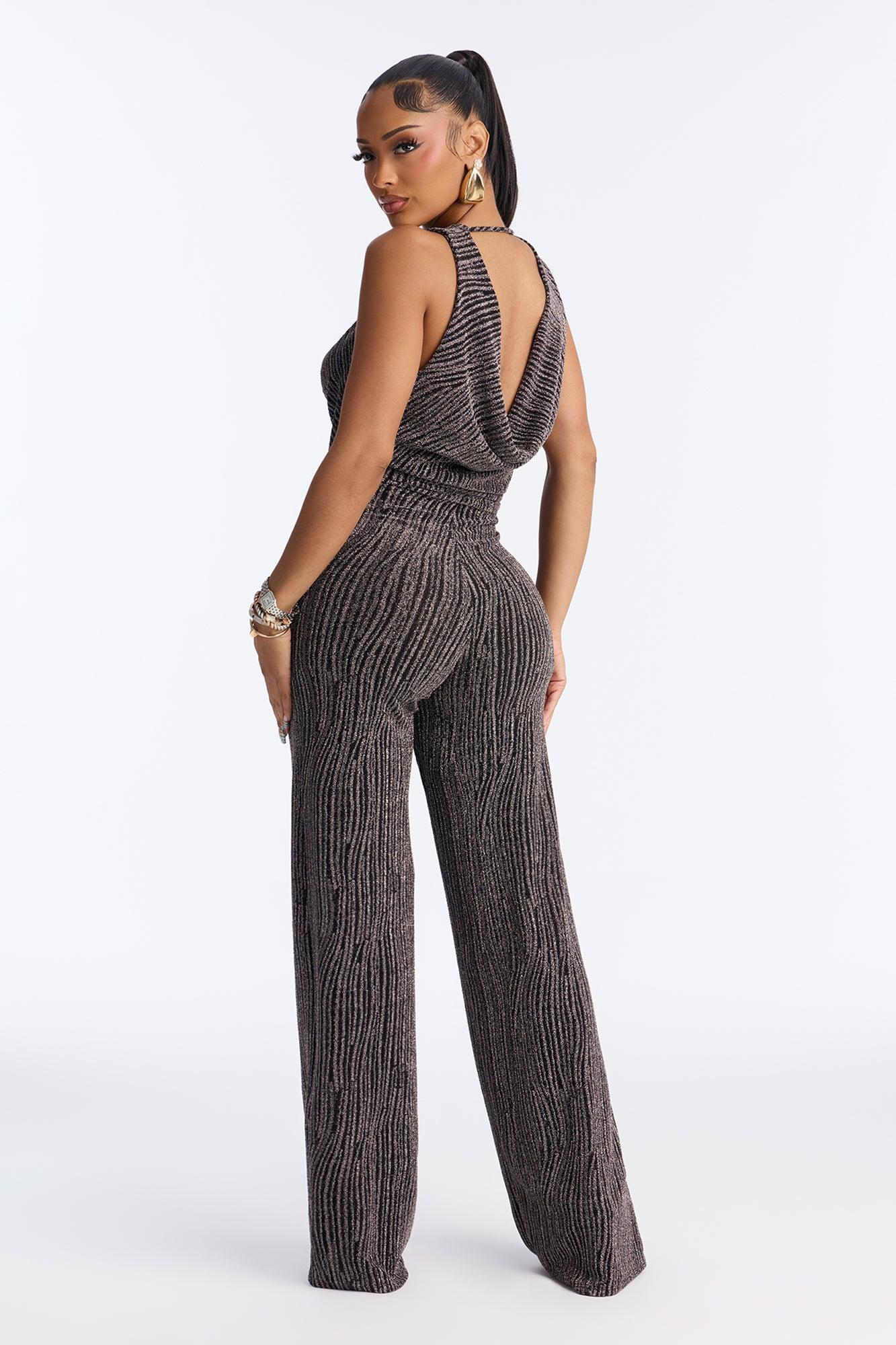 Eliana Glitter Cowl Neck Jumpsuit - Black/Gold Female