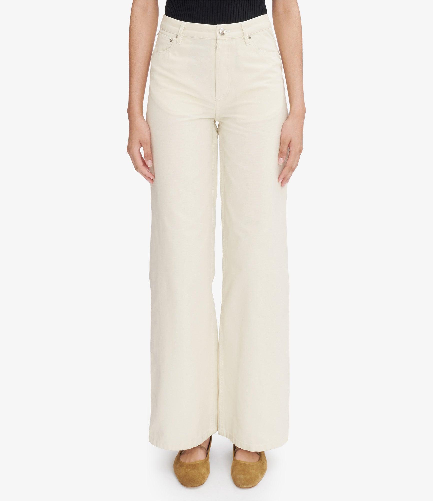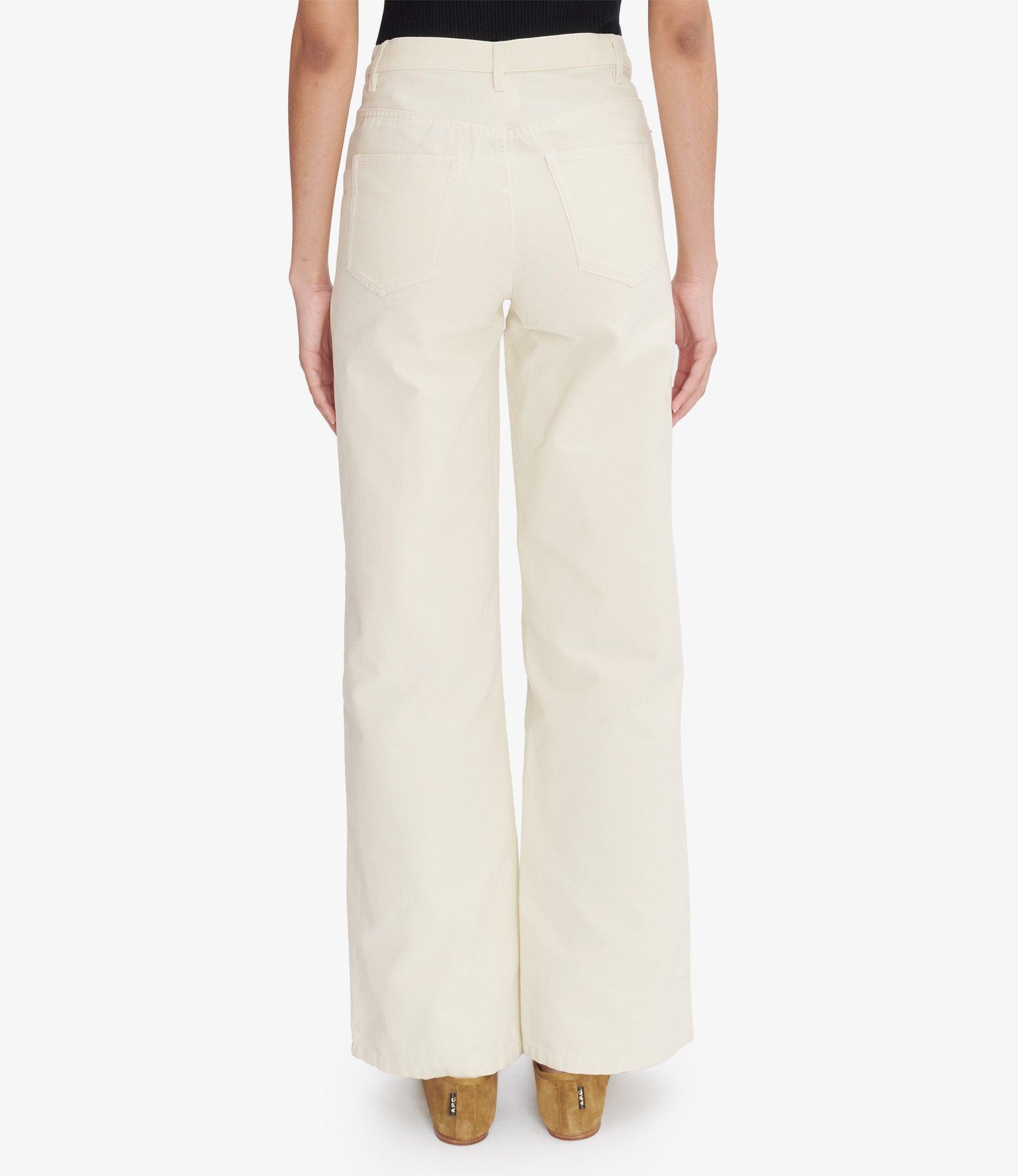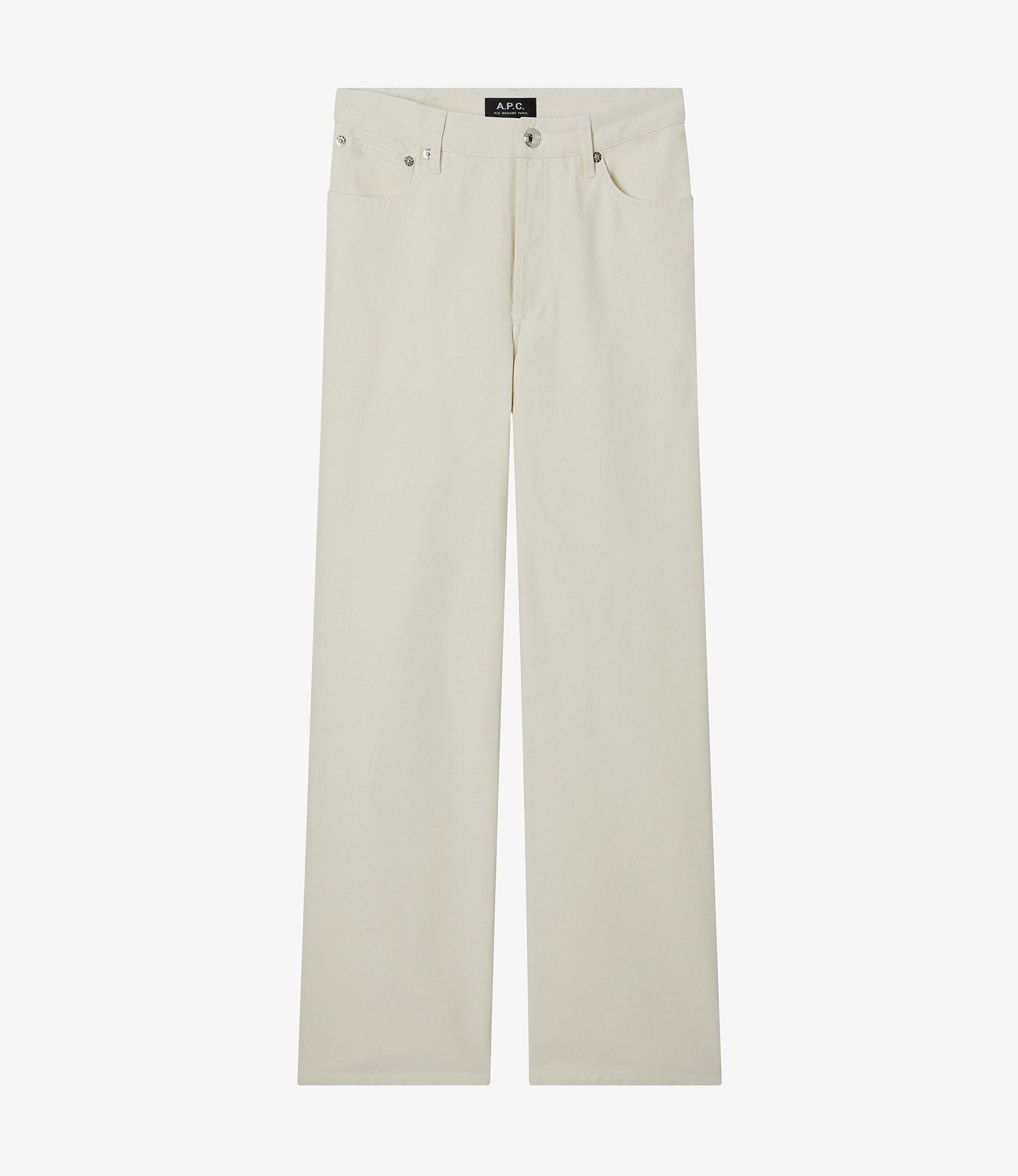 - High rise. - Envelops the hips. - Straight, slightly flared leg. - 70s cut. - Zip fly. - Tone-on-tone topstitching.
