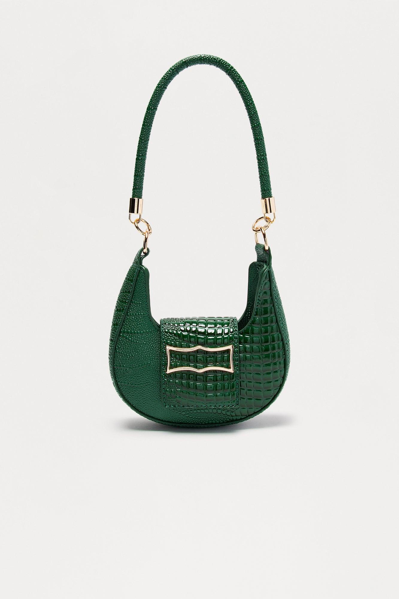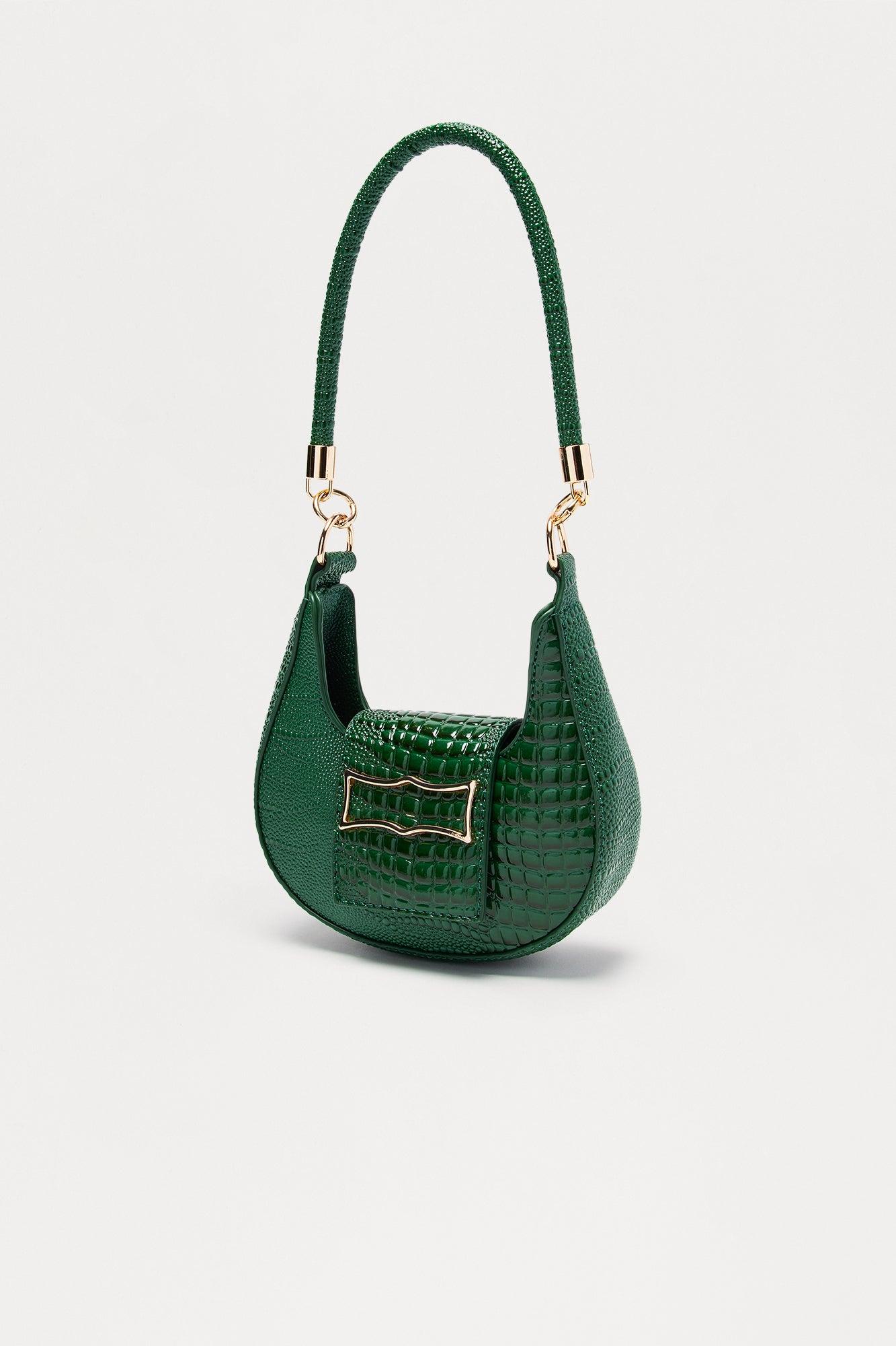 Available In Brown And Green. Shoulder Handbag Faux Leather Top Handle Fold Over & Zip Closure Embossed Croc Pattern/Print Dimensions 7"L x 2"W x 7.5"H Imported California Proposition 65WARNING: Cancer and Reproductive Harm - www.P65Warnings.ca.gov.
