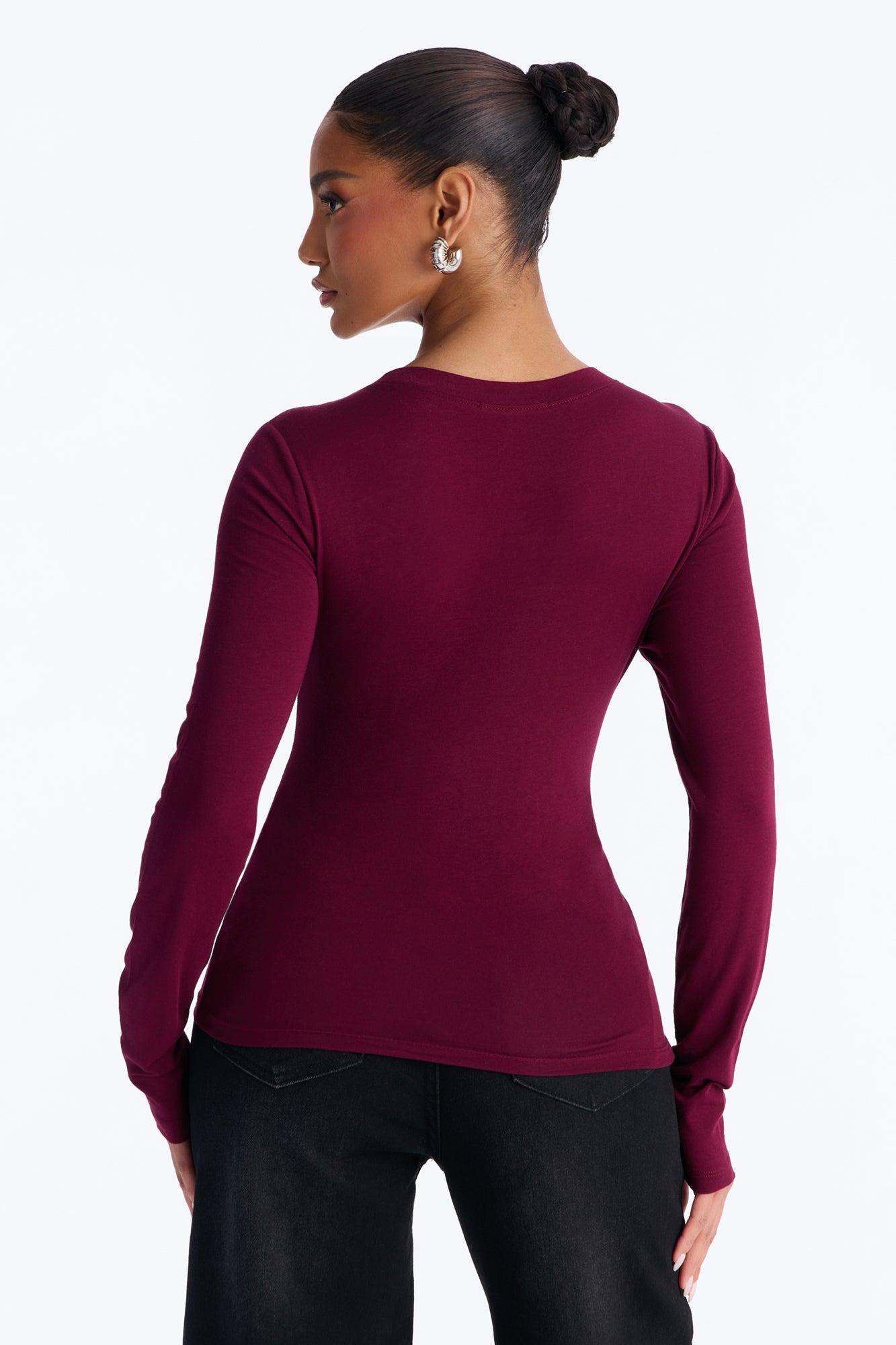 Elise Round Neck Long Sleeve Top - Burgundy Female