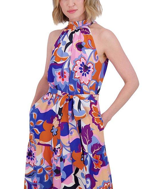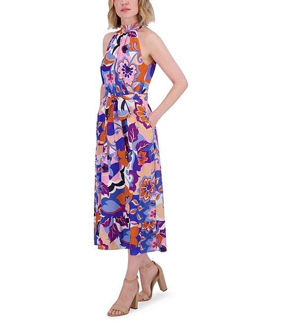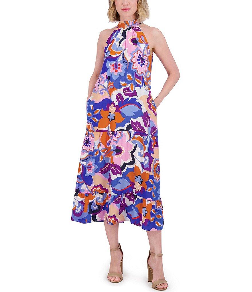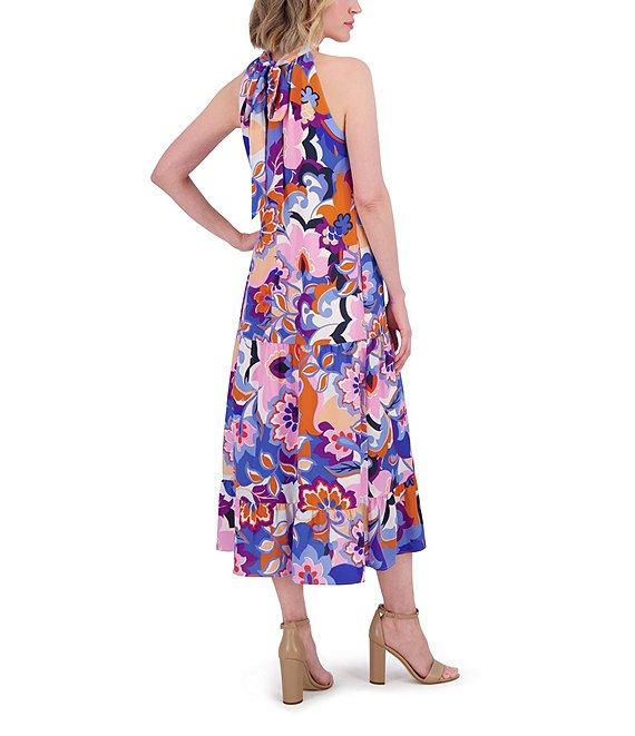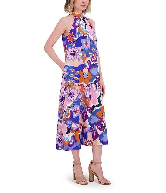 Eliza J Crepe Floral Print Halter Neck Sleeveless Sheath Midi Dress
