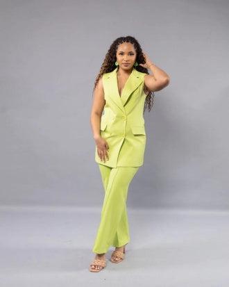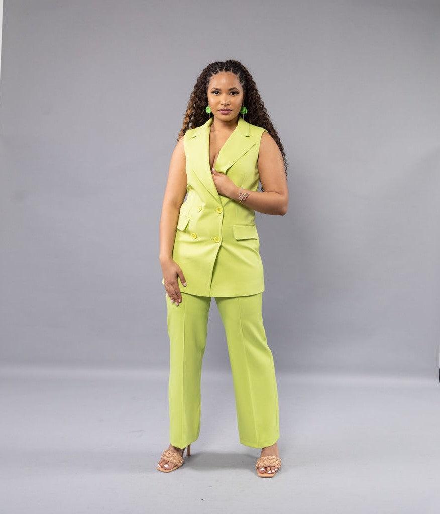 Sleeveless Blazer 2 Button Piece 2 Faux Pockets Color: Zest Lemon For detailed measurement please refer to our size guide or email/Call -