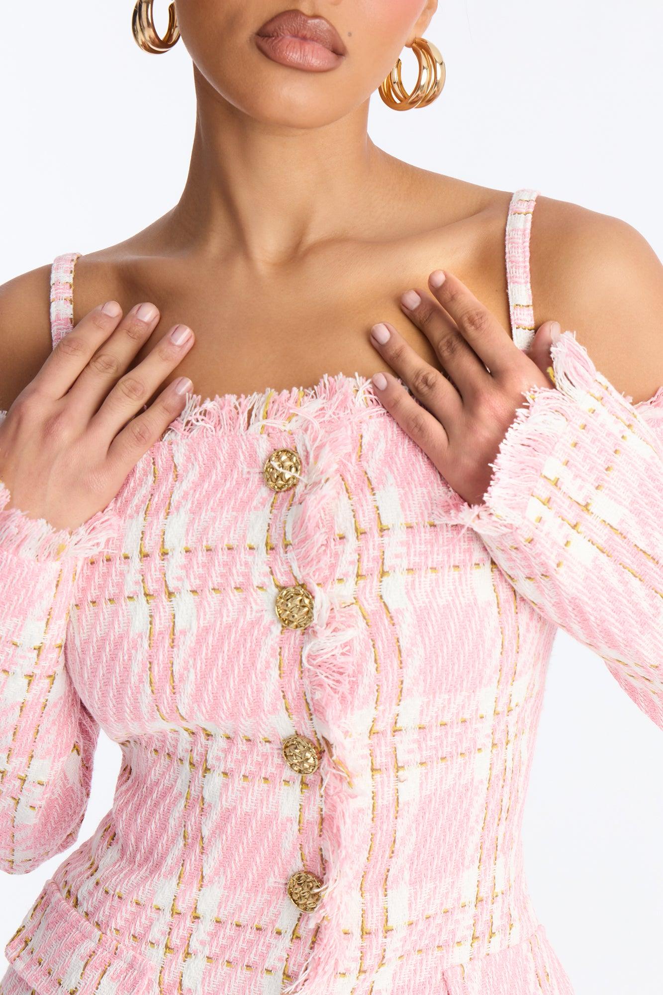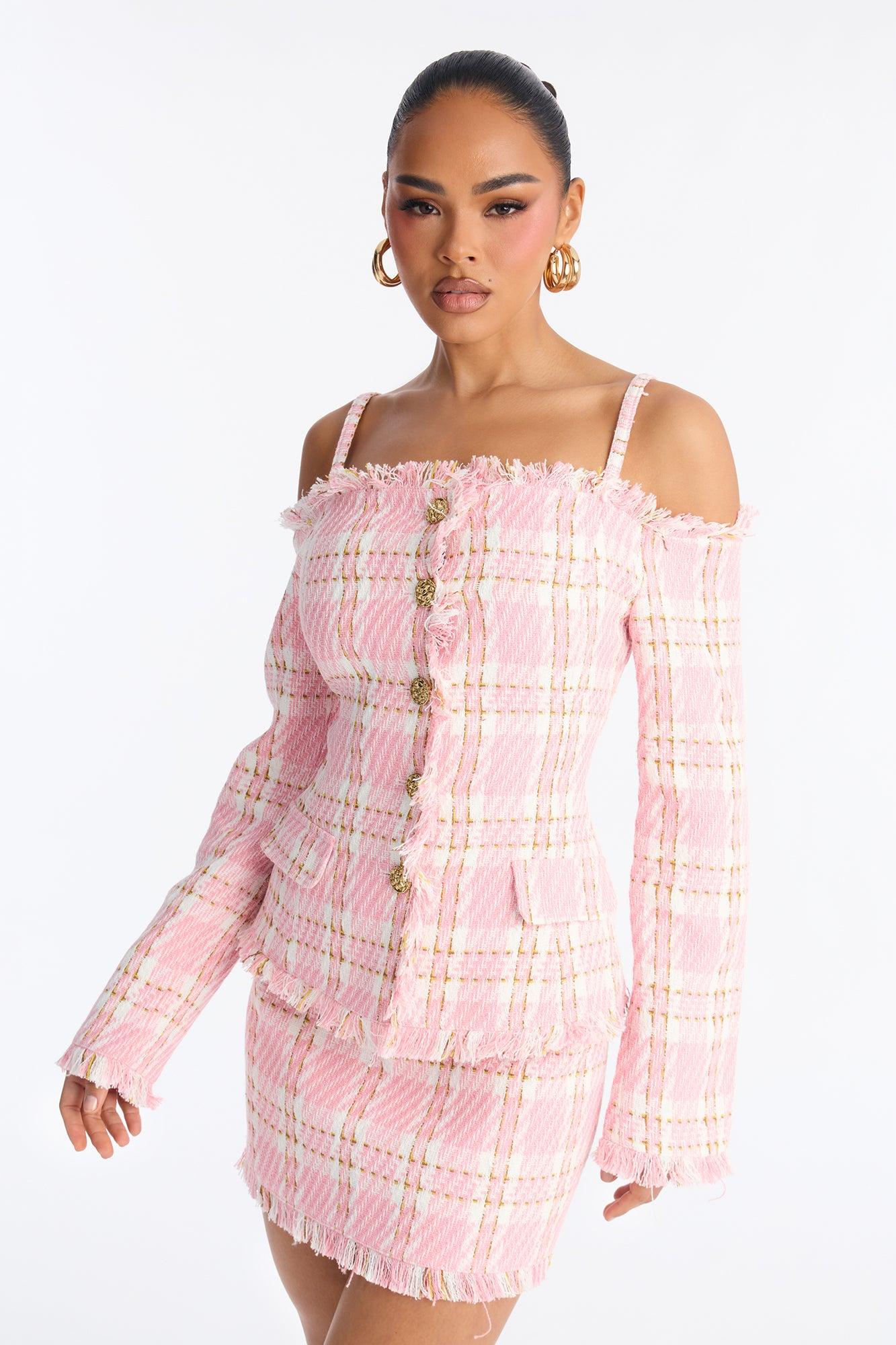 Ella Tweed Plaid Mini Skirt Set - Pink Female