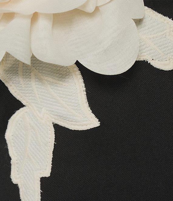 From ELLIATT, this gown features: Woven suiting fabrication Straight tailored silhouette Plunge v-neckline Sleeveless Contrast 3d floral applique Slim fit Straight hem Back zip closure Approx. 55" length Nylon/rayon/spandex Dry clean Imported.