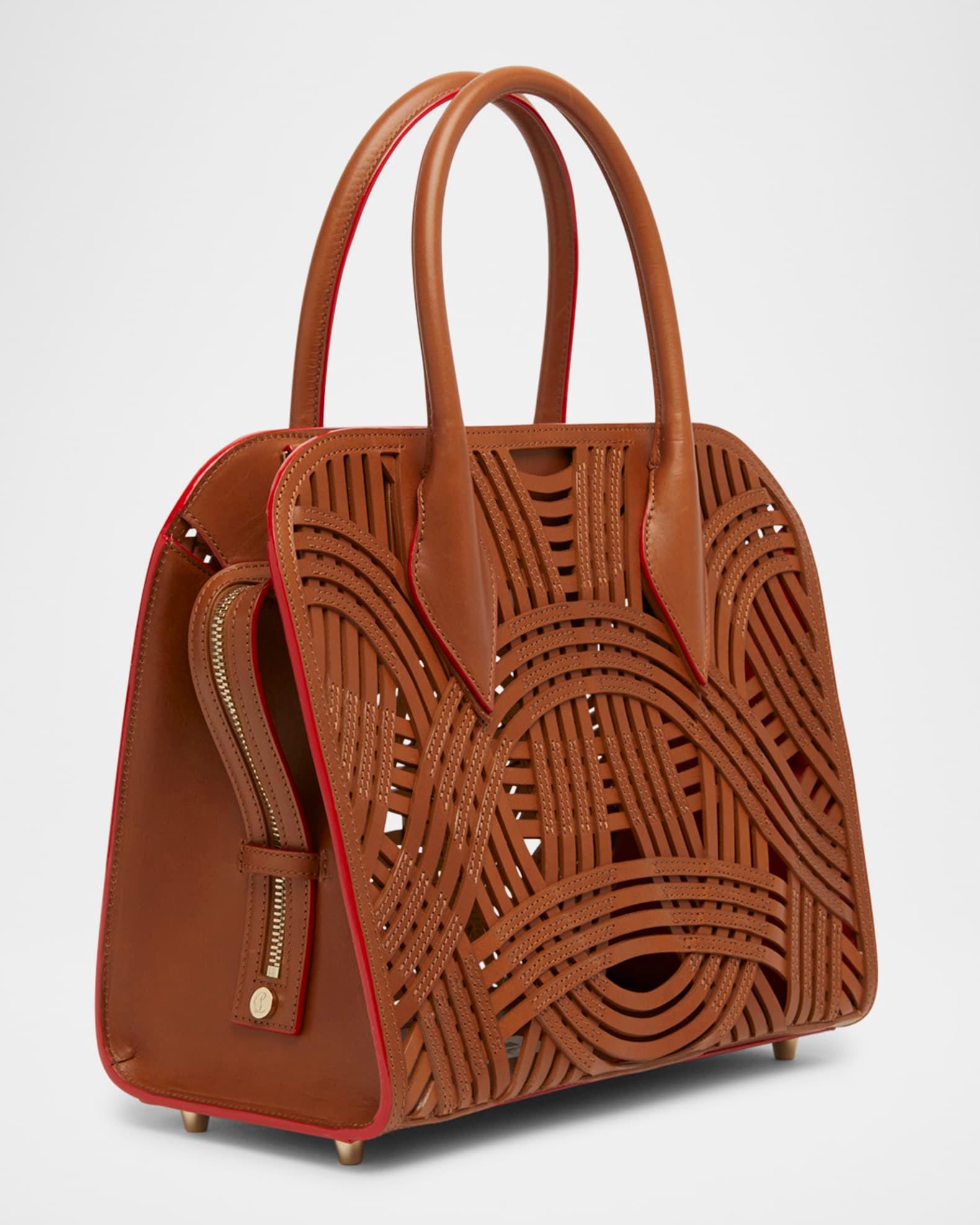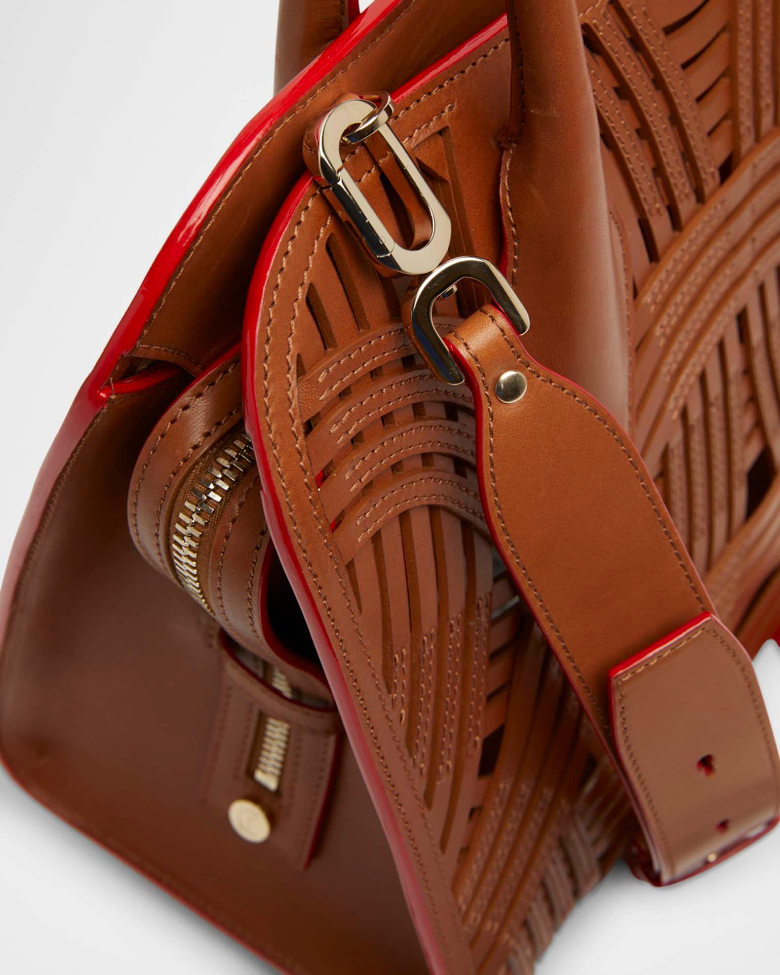 Christian Louboutin "Eloise" top handle bag in woven leather Rolled top handles Detachable, adjustable shoulder strap Can be worn as a top handle or shoulder bag Zip top closure Lining: Cotton/leather Feet protect bottom of bag Approx. 10.4"H x 12.2"W x 6.1"D Made in Italy