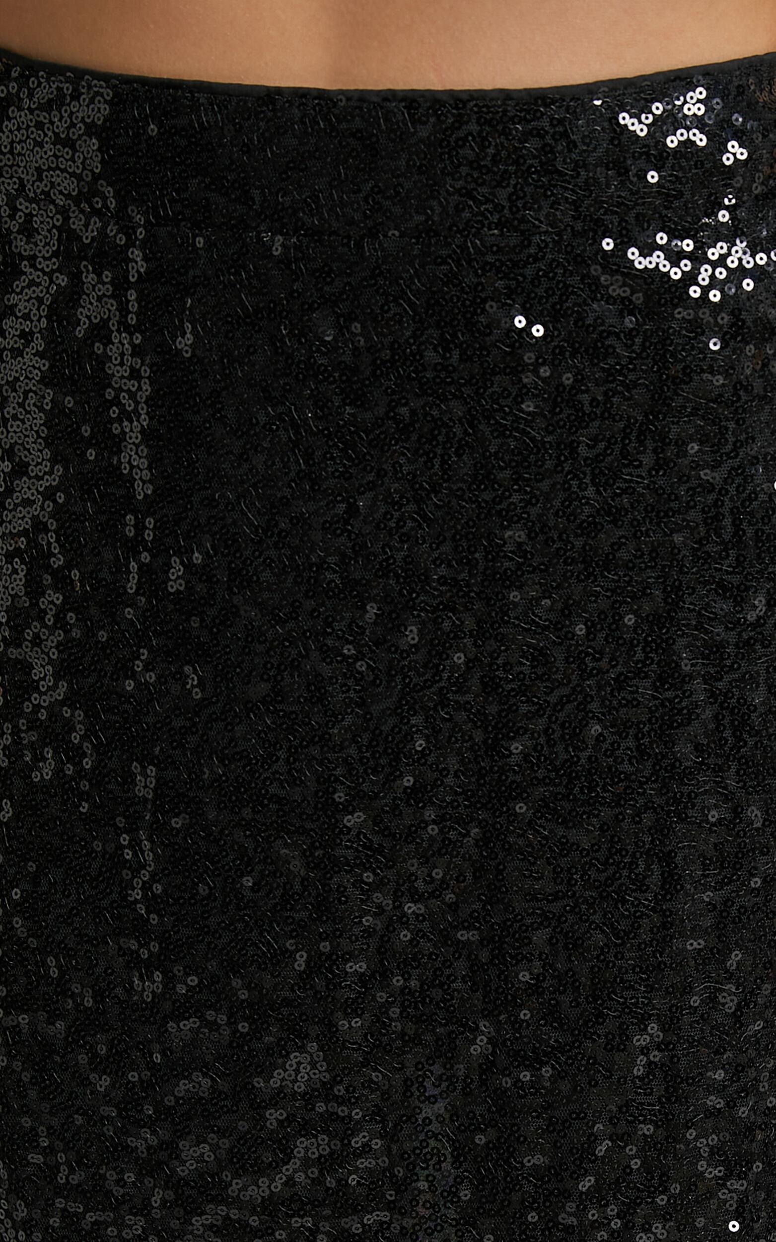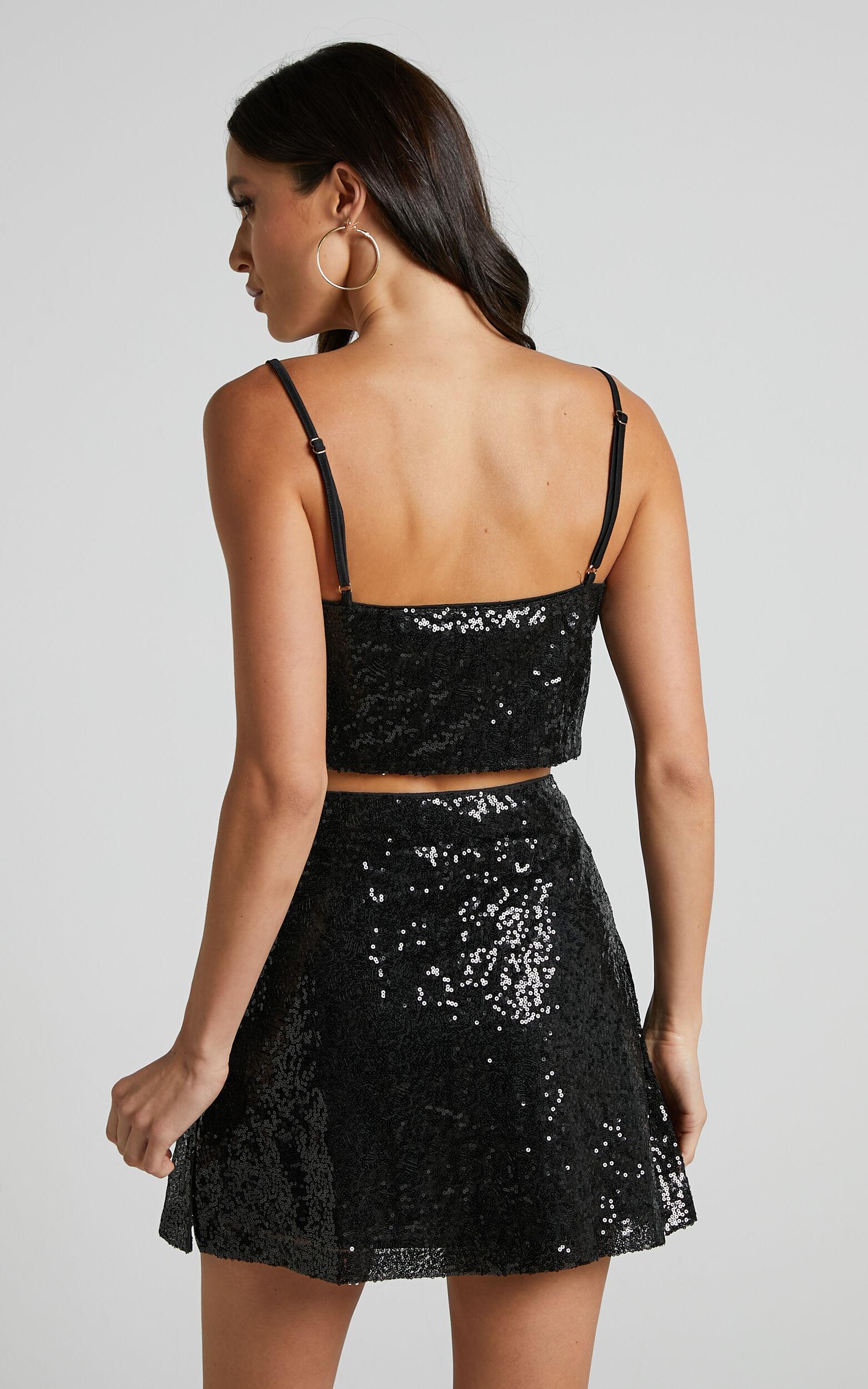 Get ready to shine all night long in the Elswyth Strappy Sequin Crop Cami! This stunning black sequin cami is perfect for any party or festival, whether it's a day event or a night out. The sleeveless and straight cut design adds a touch of sophistication, while the crop length keeps it fun and flirty. Pair it with your favorite high-waisted bottoms for a weekend activity look that will definitely turn heads. With its dazzling sequins and trendy style, this cami is an absolute must-have for fashion-forward women who love to stand out from the crowd.Product Details:Sequin crop camiStraight necklineSleeveless stylePerfect for parties and festivalsIdeal for autumn season