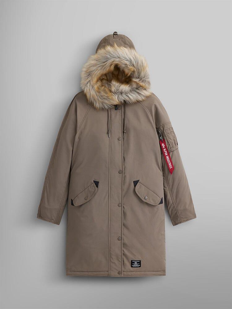 Colors marked down are final sale. Items on final sale cannot be returned or exchanged. Cannot be combined with other discounts or promotions. Sleek and minimal on the outside, this parka’s got it all on the inside. The lining features a split between coy faux fur and polygon quilting for maximum insulation. DETAILS A long parka jacket with faux fur hood and two exterior flap pockets FEATURES Removable faux fur around hood edge Faux fur lined hood and inside upper body Drawstrings at hood and waist Utility pocket on sleeve with Alpha red ribbon Storm flap Polygon quilting inside body Two exterior flap pockets One interior patch pocket BENEFITS Water resistant