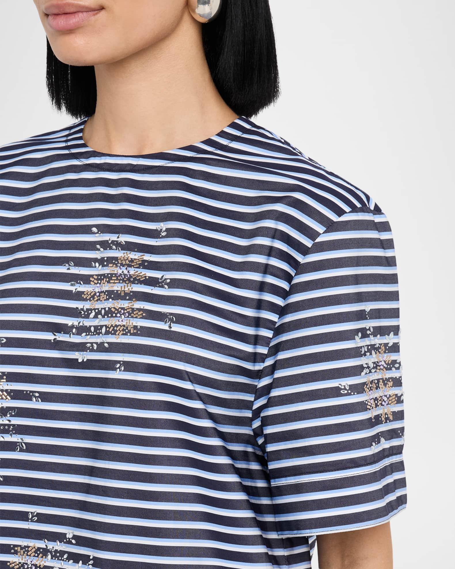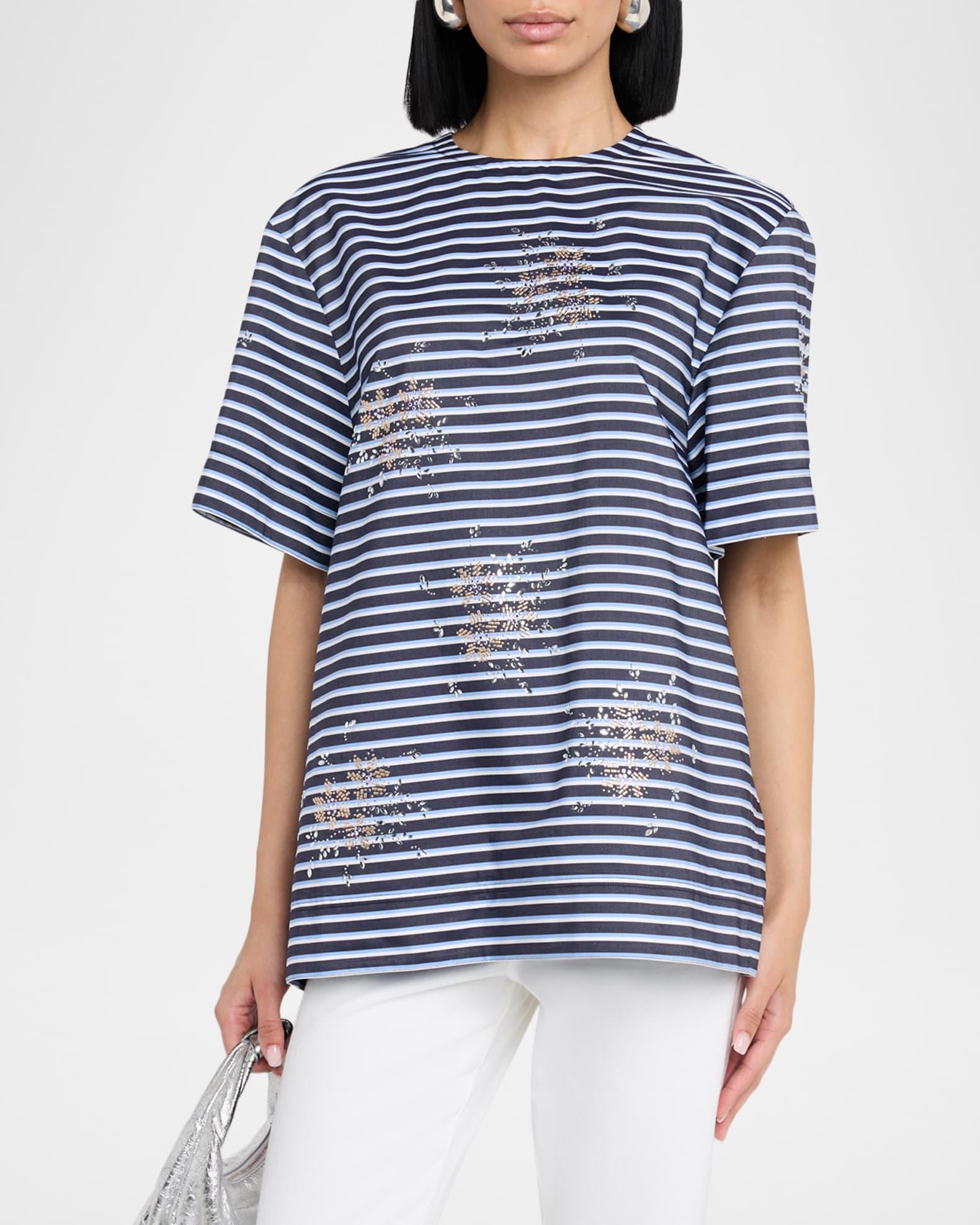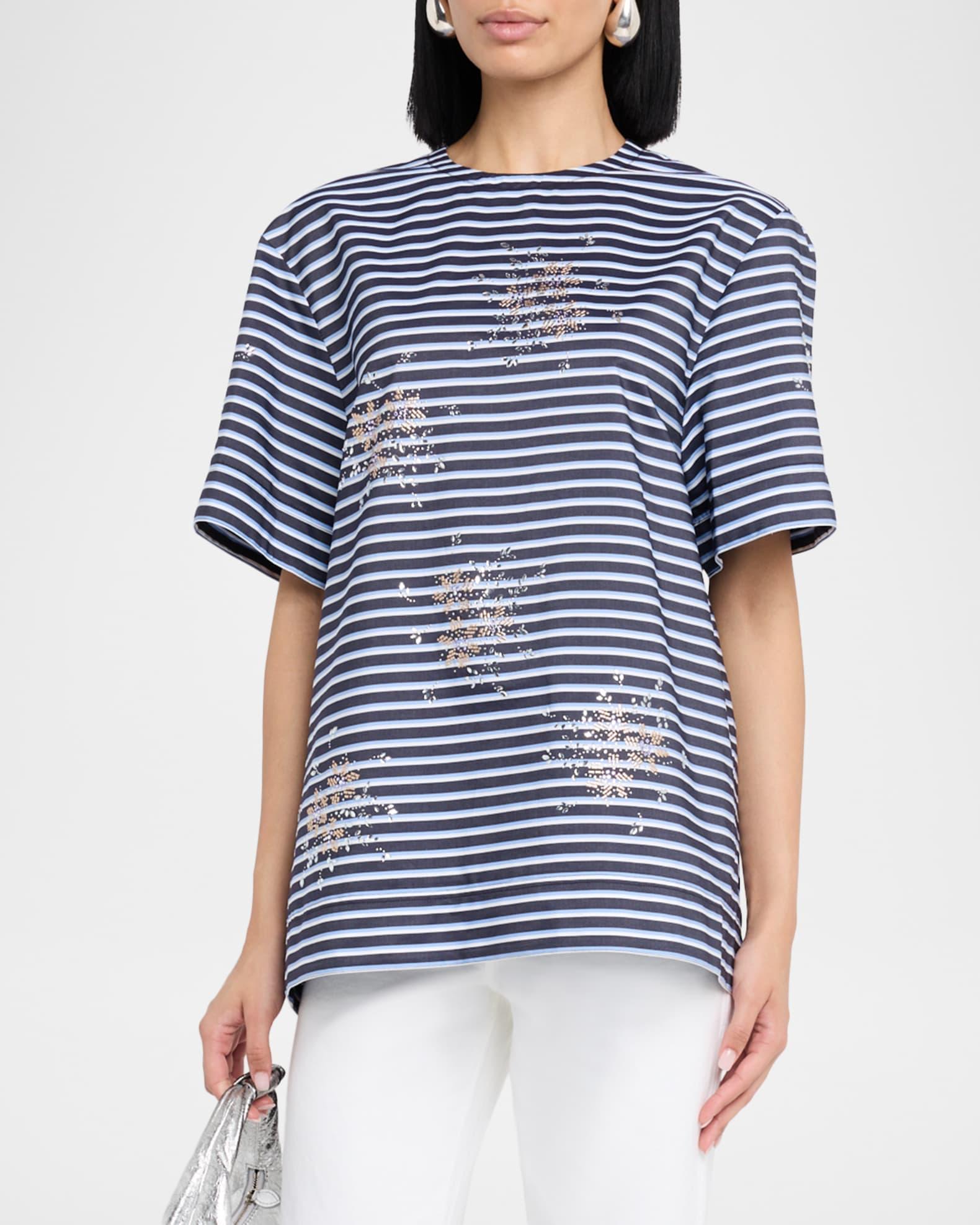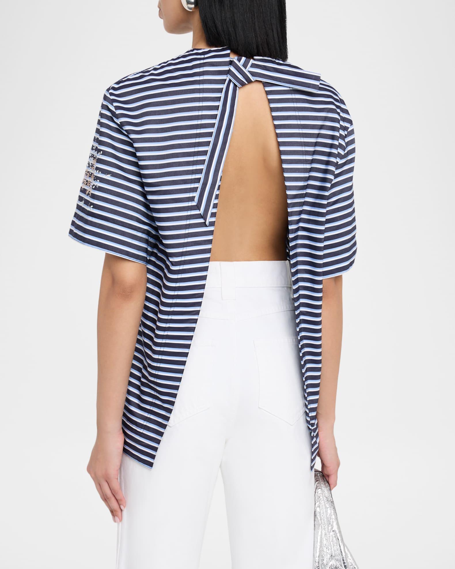 Embellished Striped Short-Sleeve Backless T-Shirt
