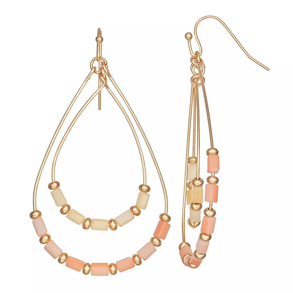 These gorgeous gold tone double teardrop earrings from Emberly are sure to quickly become a favorite pair in your jewelry collection. Click on this JEWELRY & WATCHES GUIDE to learn about fit, styles, materials and more! These gorgeous gold tone double teardrop earrings from Emberly are sure to quickly become a favorite pair in your jewelry collection. Click on this JEWELRY & WATCHES GUIDE to learn about fit, styles, materials and more! FEATURES Earring size: 64 mm Backings: fishhook Metal: iron Material: glass, plastic Plating: gold tone Finish: polished Packaging: decorative card Imported Not appropriate for children 14 years old and younger. Size: One Size. Color: Orange. Gender: female. Age Group: adult.