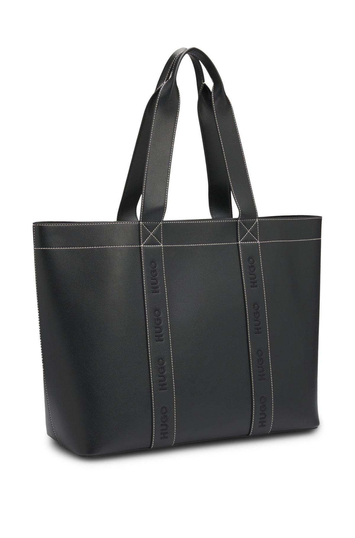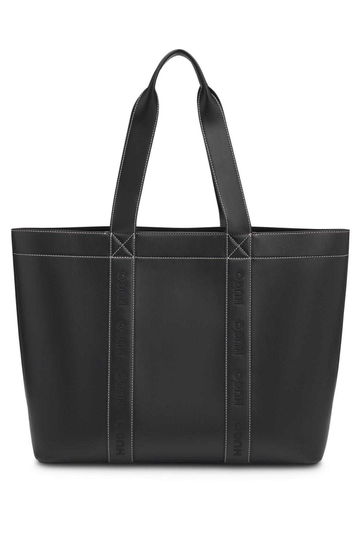 Embroidered-logo tote bag in faux leather