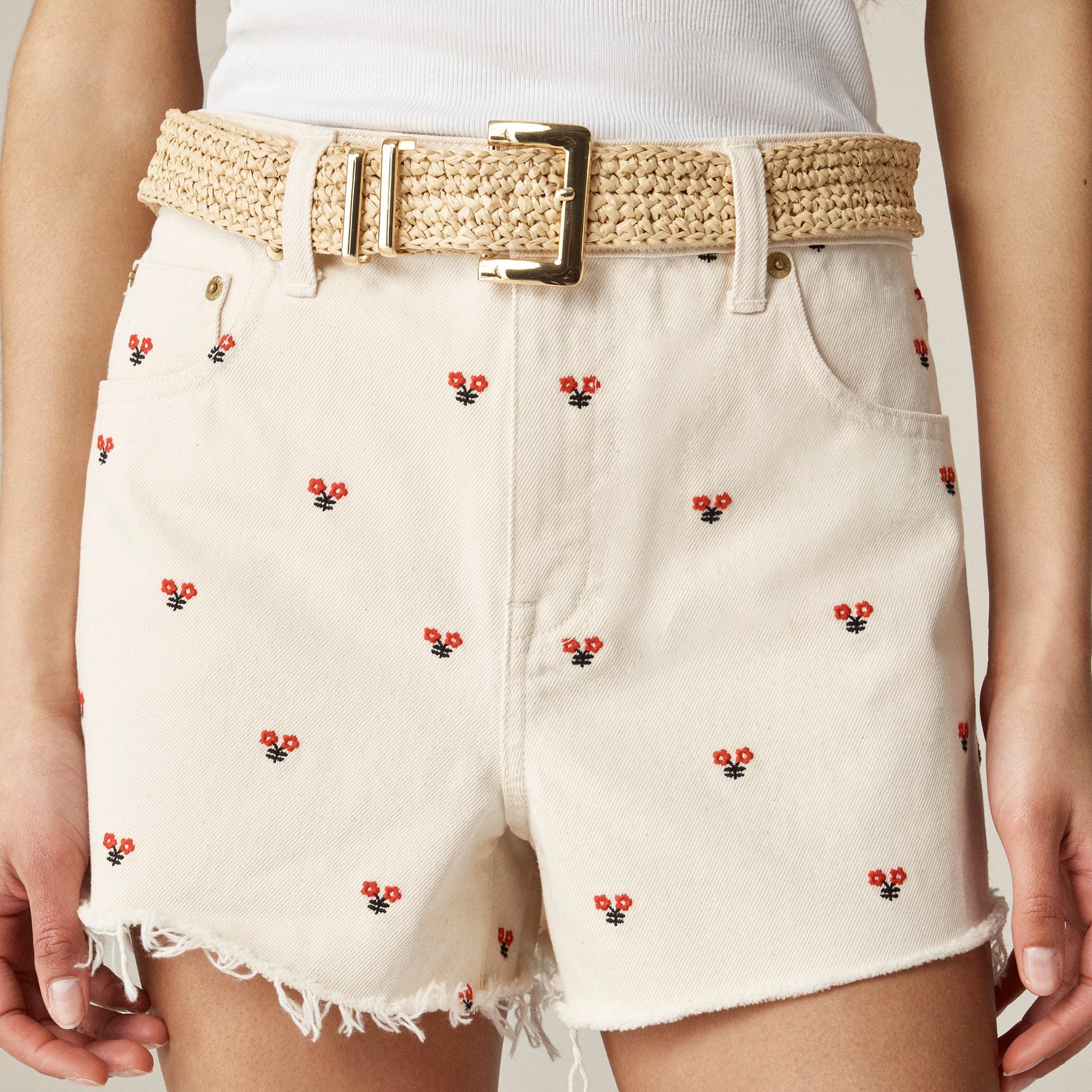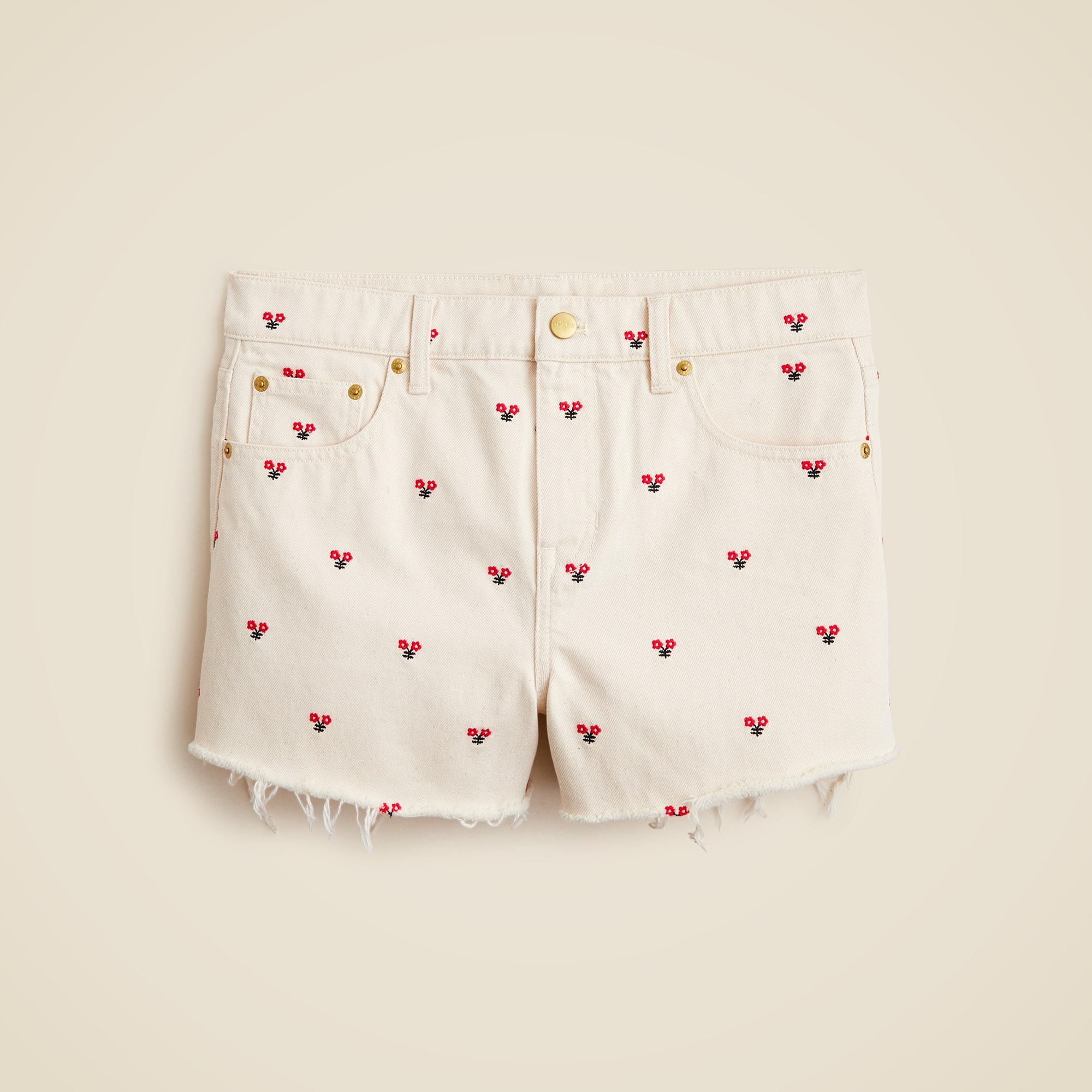 Embroidered lower-rise denim short