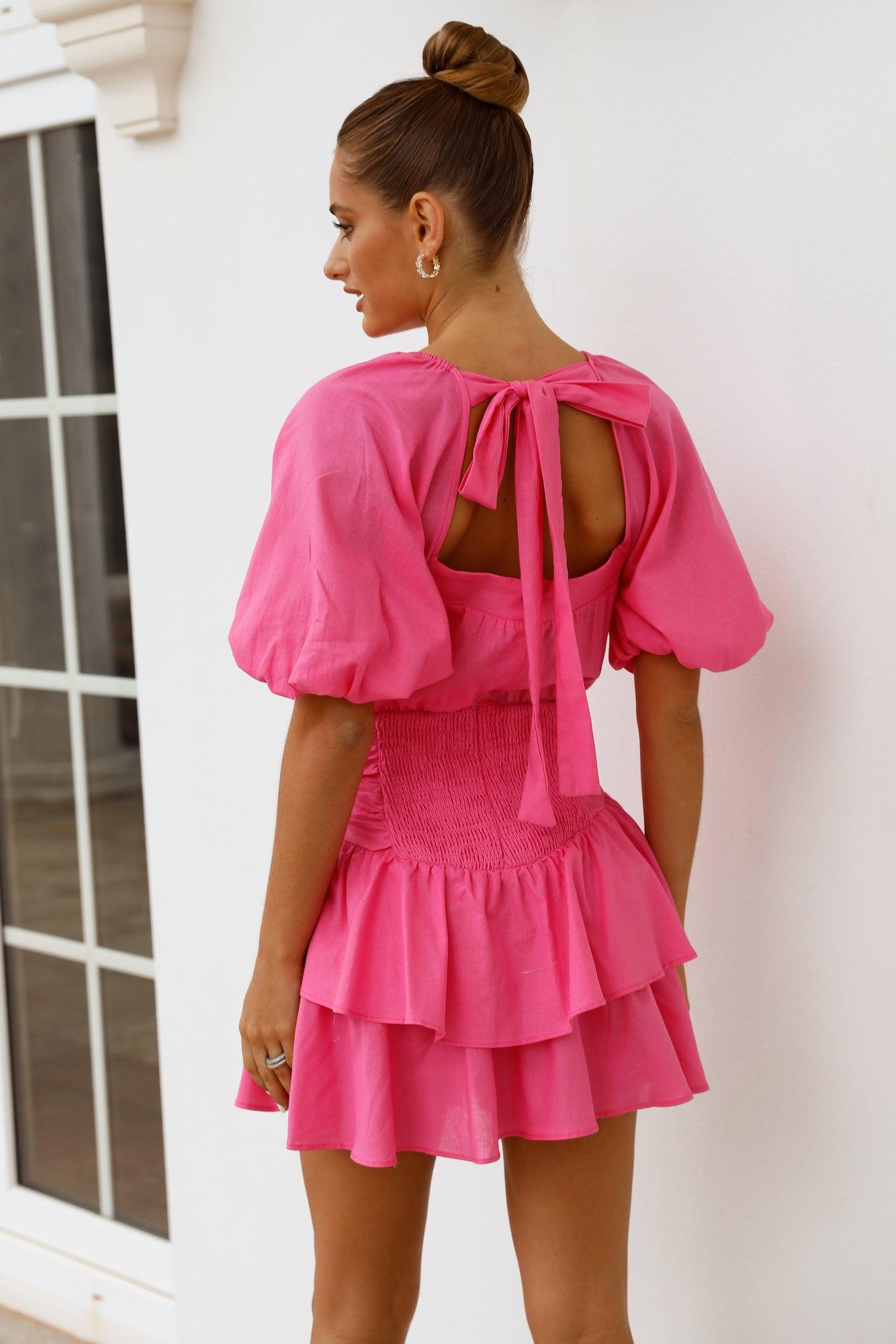 Length from bust to hem of size S: 75cm. Mini dress. Lined. Cold hand wash only. Model is a standard XS and is wearing size XS. True to size. Lightweight, non-stretchy fabric. Ties to back. Back zipper, elasticated back waist. Halterneck ties. Cotton/Linen. The perfect summer's day dress is easily the Emerald Eyes Dress. Featuring puffy short sleeves with halterneck ties, and a faux wrap detail. We can't forget the gorgeous tiered skirt to finish. We team ours with black mules and a gold adornments.