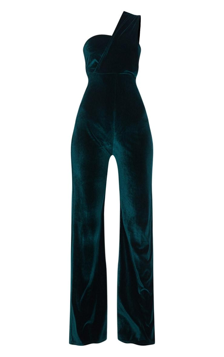 Channel all the luxe vibes into your new season wardrobe with this unreal one shoulder jumpsuit. Featuring an emerald green material with a draped one-shoulder design and a wide leg style, how could you say no? This velvet jumpsuit is everything we are loving for those upcoming occasions and beyond. Team this green velvet jumpsuit with your fave heels and gold earrings and for a look that is sure to have all eyes on you.Lengthapprox 160cm/63inch (Based on a sample size UK 8)Model wears size UK 8/ EU 36/ AUS 8/ US 4Model Height - 5ft 8inchp]:!mb-4inch>Brand: PrettyLittleThingCategory: DressesProduct type: Wide Leg JumpsuitColor: Emerald GreenMaterial: VelvetDesign: PlainNeckline: BandeauSleeves: SleevelessOccasion: Occasion