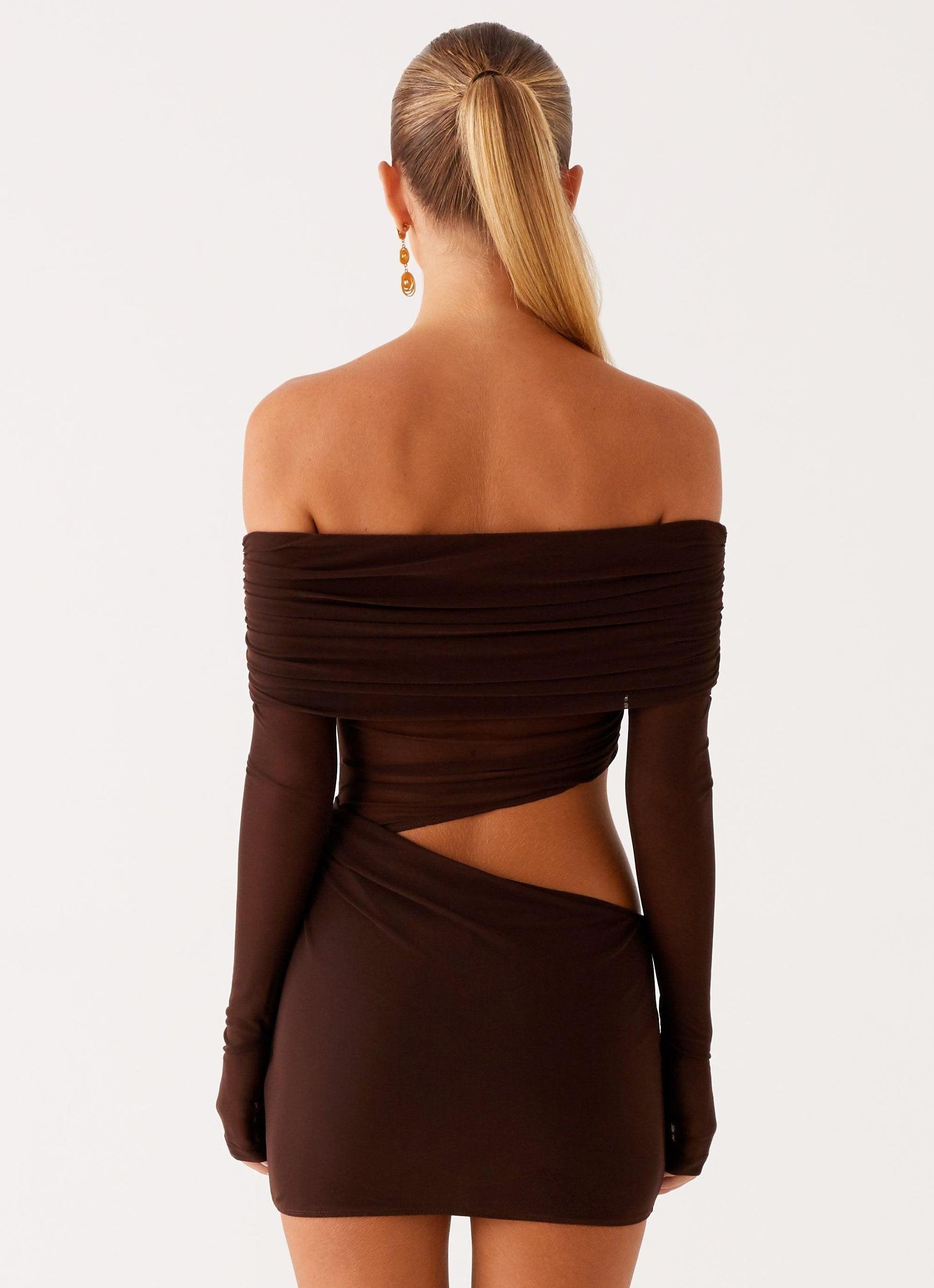 Peppermayo Exclusive Emery Mini Dress featuring an off-shoulder neckline, ruched shoulder seams, and a side cutout. A flirty silhouette designed for balmy nights and dancefloor moments. - Off-shoulder neckline- Mini length- Ruched shoulder seams- Side cut-out- Stretch material- Lined bustier and skirt- Semi-sheer waist and sleeves- 95% polyester, 5% spandex Size AU 8 / US 4 garment measurements: Length - 63cm/24.8in.Bust - 70cm/27.6in.Waist - 61cm/24in.Hem - 80cm/31.5in.Sleeve length - 60cm/23.6in. Yasmin is 174cm and wearing a size AU 6 / and US 2