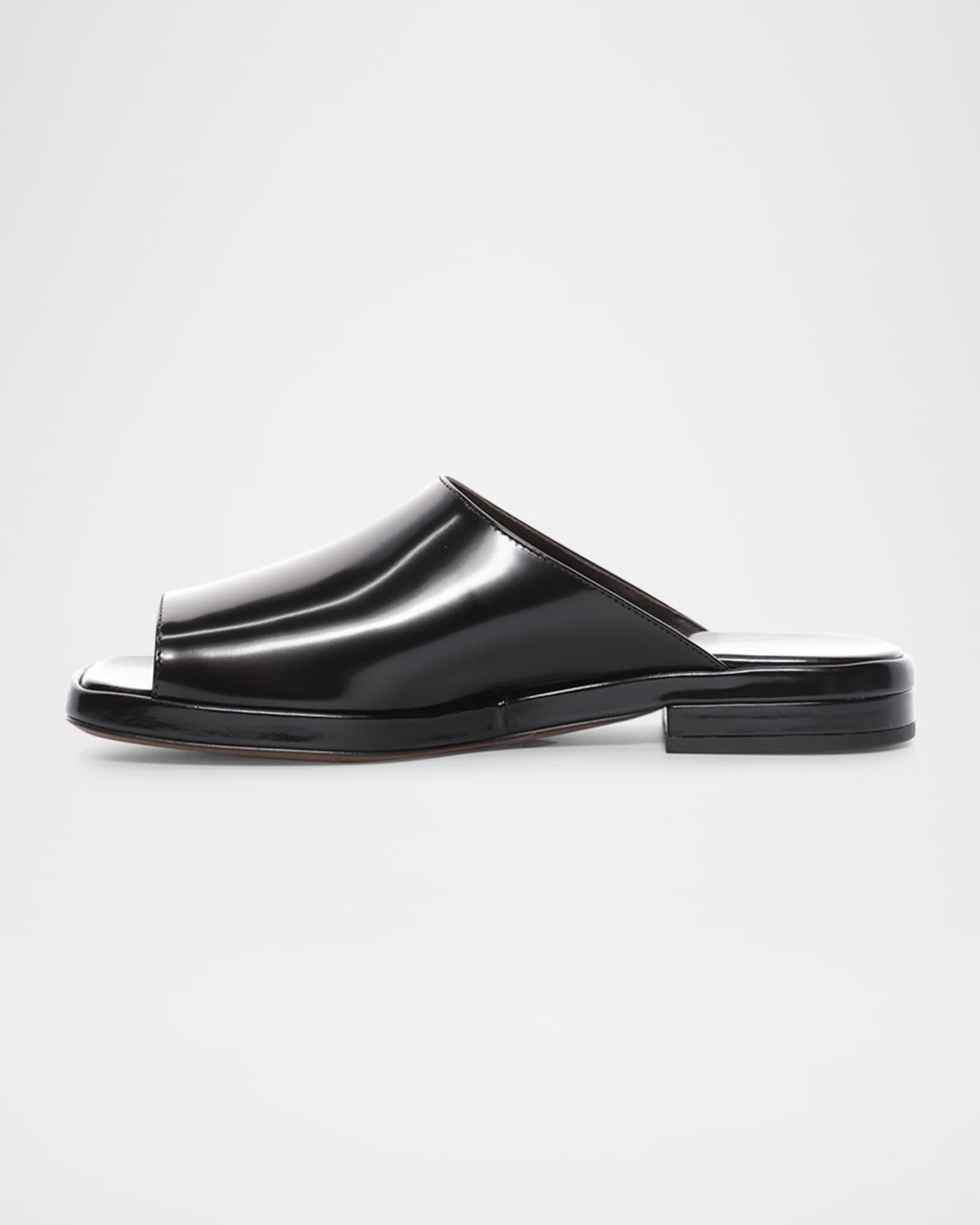 THE ROW "Emi" sleek calf leather mule sandals 0.75 in / 20 mm flat heel Open toe Wide band upper Slide style Leather outsole Lining: Leather Made in Italy