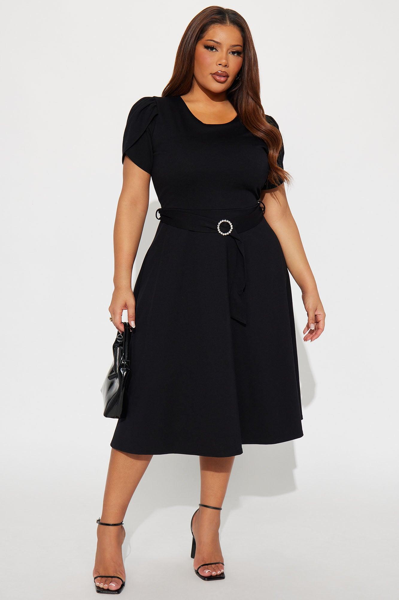 Available In Black. Midi Dress High Neckline Short Sleeve Belted Hardware Zipper Stretch Length Measured Flat = 42" Self : 62% Viscose 33% Nylon 5% Spandex Lining: 100% Polyester Imported California Proposition 65WARNING: Cancer and Reproductive Harm - www.P65Warnings.ca.gov.