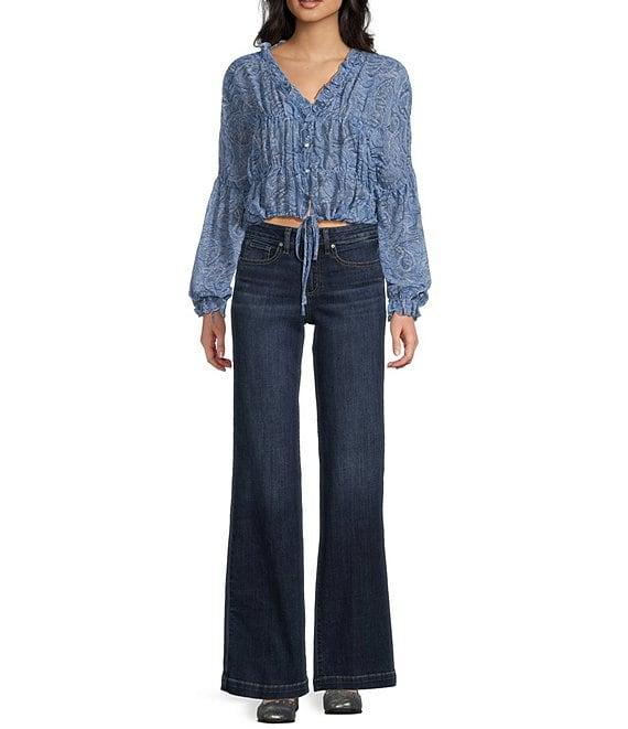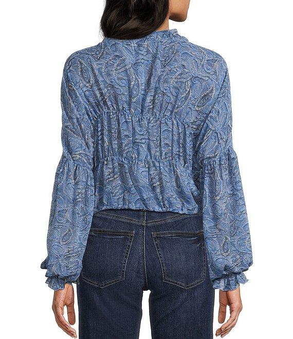 Emory Park Paisley Printed V-Neck Button Front Long Sleeve Cinched Hem Blouse