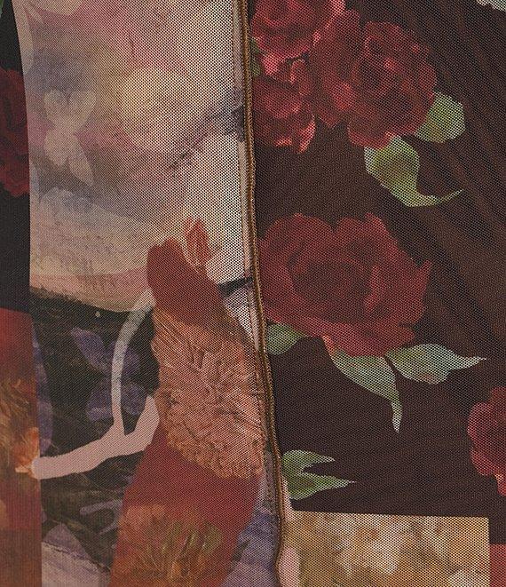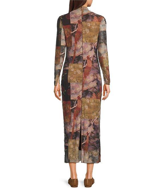 Emory Park Patchwork Printed Mesh Mock Neck Long Sleeve Midi Dress